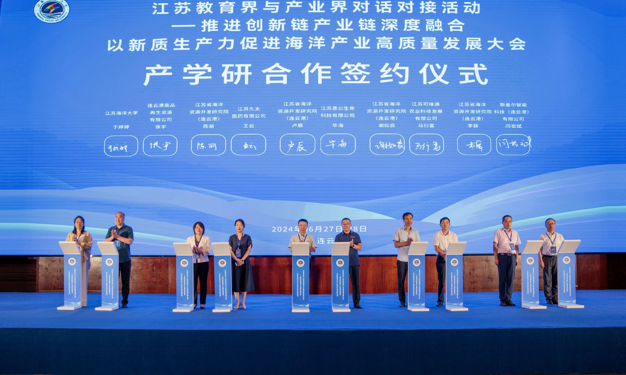 为深入贯彻落实党的二十大精神和习近平总书记对江苏工作重要讲话重要指示精神,因地制宜发展海洋新质生产力,以科技创新驱动海洋产业高质量发展,6月28日,江苏教育界与产业界对话对接——推进创新链产业链深度融合,以新质生产力促进海洋产业高质量发展大会在连云港市召开。