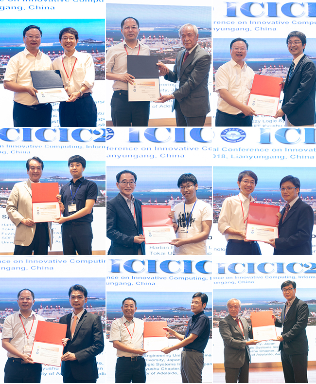 21日晚,举行ICICIC2018最佳论文颁奖仪式。宁晓明、李存华、Takeshi Yamakawa、Toshinori Kato、夏元清等分别为最佳论文获奖者颁奖。