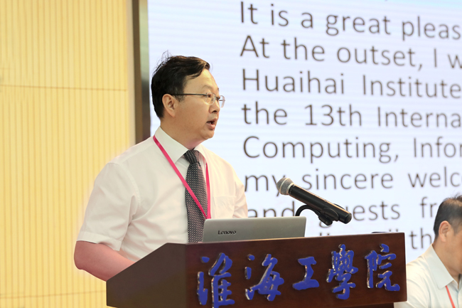 宁晓明发表题为Joint Construction and Sharing, Mutual Learning and Benefits——Leading New Engineering Discipline Construction with Innovative Computing, Information andControl的讲话。作为承办方,他代表淮海工学院向各位远道而来的领导、嘉宾和专家学者们表示热烈的欢迎。宁晓明指出,淮海工学院于1985年创办,建校30多年来,先后获批硕士学位授权单位、博士学位授予立项建设单位、国家科技企业孵化器、“十三五”产教融合发展工程规划项目。近年来,学校积极构建并不断夯实“综合框架、工科主体、海洋特色”的学科专业体系,计算机科学与技术是江苏省品牌专业,电子信息类、计算机类专业是江苏省重点专业。当前,全校上下凝心聚力,正在全力推进9999js金沙老品牌创建工作。宁晓明表示,此次会议以“国际创新计算、信息与控制”为主题,对于高等教育领域推进“新工科”建设具有前瞻性、引领性和基础性的作用。同时,他也对推进创新计算、信息与控制领域的开放建设提出了三点建议:一是要共建共享,充分发挥优质资源的整合效应;二是要互学互鉴,共同开创国际交流与合作的新境界;三是要以人为本,推动科学研究与教育教学的深度融合。