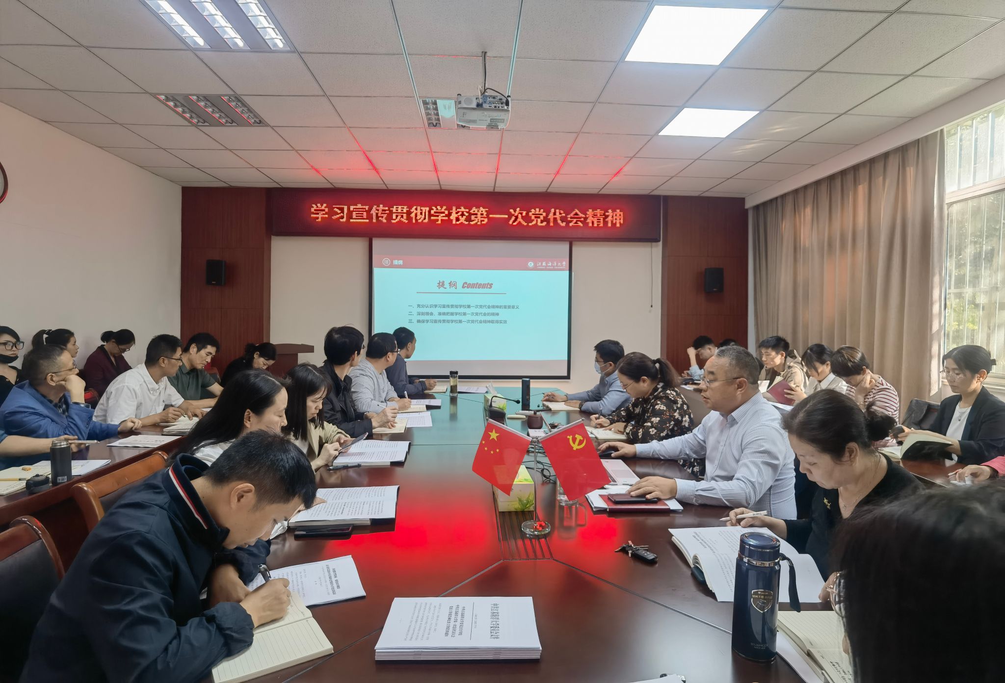黄金虎要求,学院全体师生要采取多种形式,认真研读学校第一次党代会报告、深入学习党代会精神,紧密结合学院年度工作重点,努力完成高质量发展指标任务。对照博士学位授予单位和博士点培育学科建设目标,着力产出一批标志性成果。将党代会精神转化为推动工作的强大力量,用实际行动贯彻落实学校第一次党代会精神。
