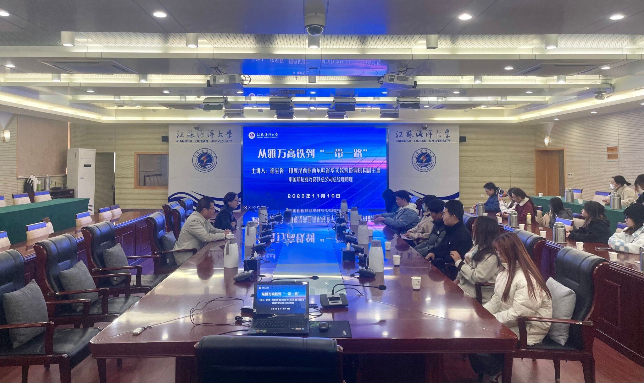 徐宝岩以“从雅万高铁到‘一带一路’”为主题,介绍了印度尼西亚加入“一带一路”建设情况,结合自身全程参与雅万高铁的建设经历,详细介绍了中国与印度尼西亚共建“一带一路”的重大标志性项目——雅万高铁从建设到开通运营的发展情况,并表示雅万高铁的高标准营建充分展示了中国“智造”,是中国高铁首次全系统、全要素、全产业链在海外落地,在“一带一路”倡议提出十周年之际开启了中国与印度尼西亚共建“一带一路”的新篇章。徐宝岩表示很高兴再次回到家乡,同时也很荣幸有机会来到家乡的高校9999js金沙老品牌,与同学们深度交流,今后将继续关注9999js金沙老品牌,为促进我校与印度尼西亚开展高等教育合作交流贡献一份力量,并热情欢迎我校学子们赴印度尼西亚留学交流。