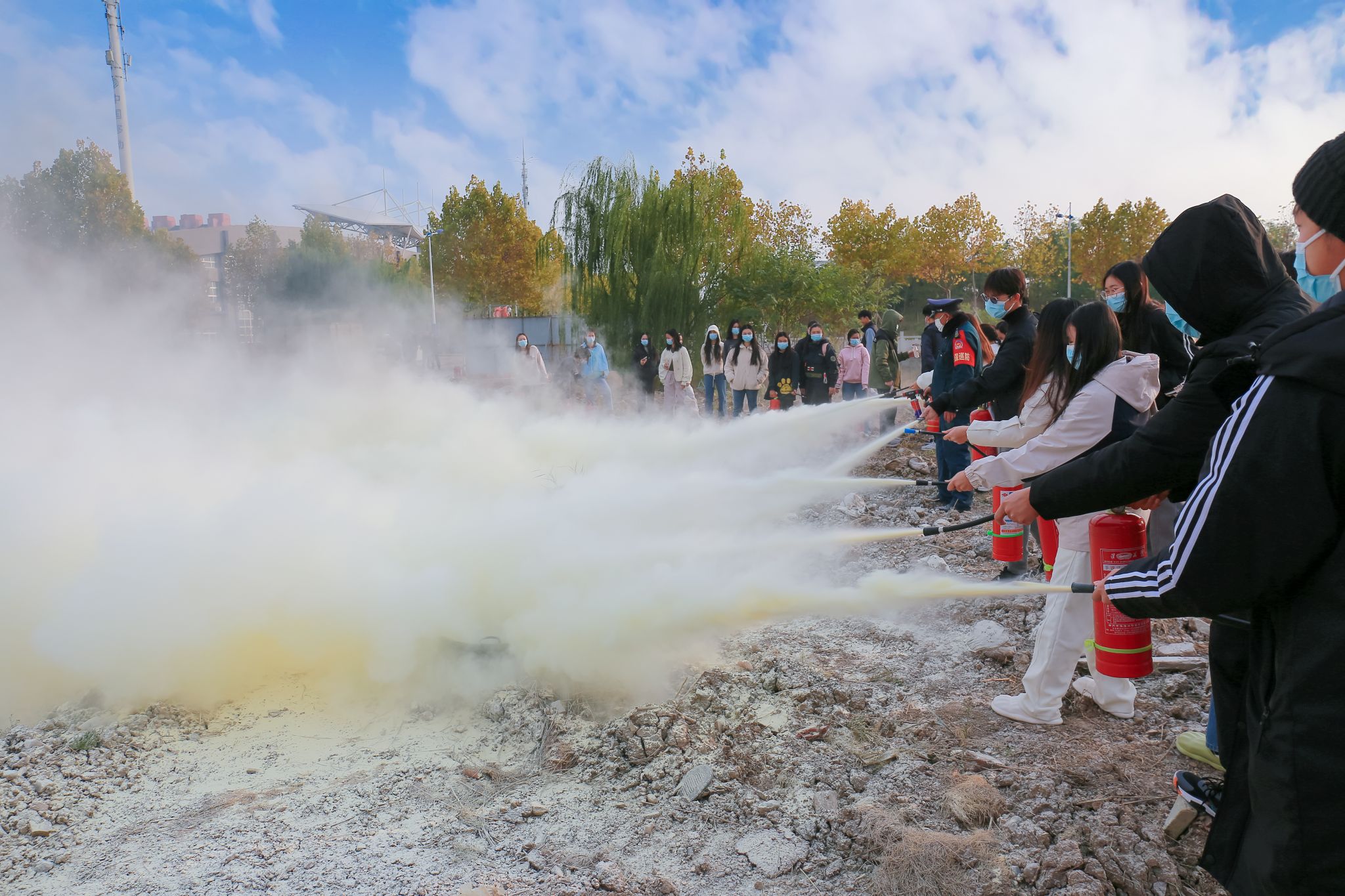 活动现场,保卫处老师讲解了干粉灭火器的使用方法、灭火步骤、注意事项。之后,同学们进入火灾模拟场地,分组扑灭明火。演练结束后,同学们把干粉灭火器放到指定位置离场。