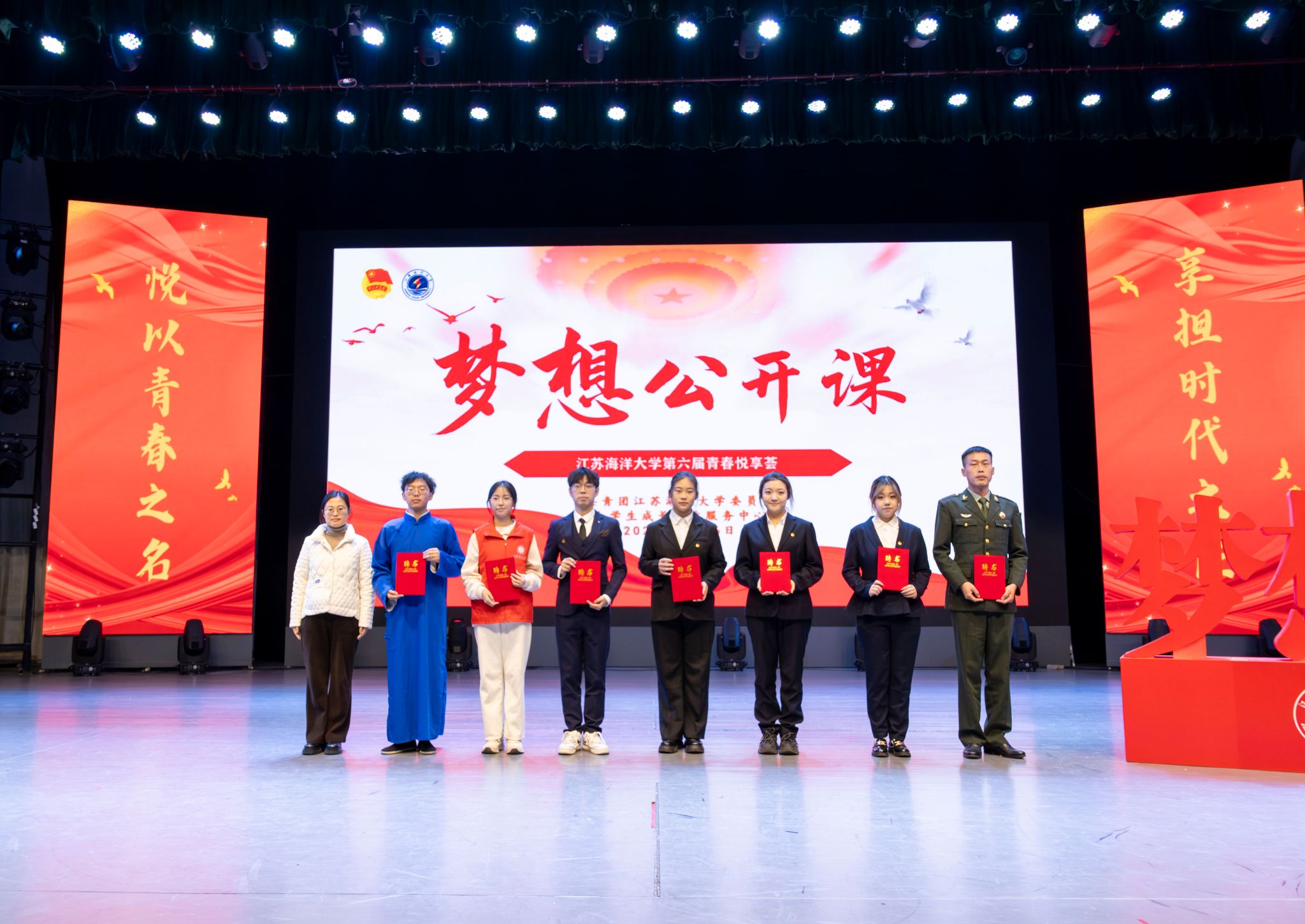 本次“梦想公开课”分为青春爱国、道德信仰、志愿服务、入伍参军、摄影微视频、学生干部经历、文体才艺7个专题,7位主讲人通过讲述自己的青春故事,向广大同学传递人生理想,分享奋斗经验,切实发挥优秀青年的榜样领航作用。