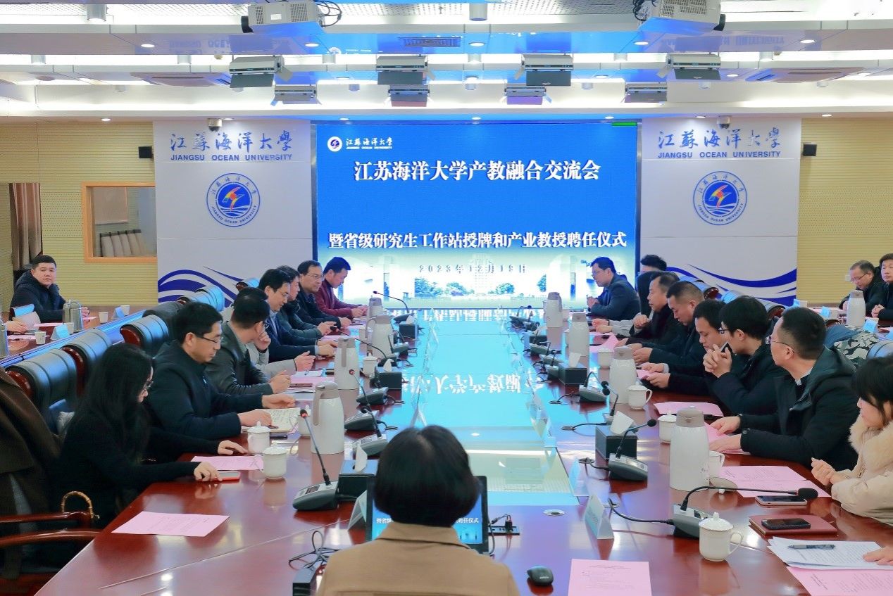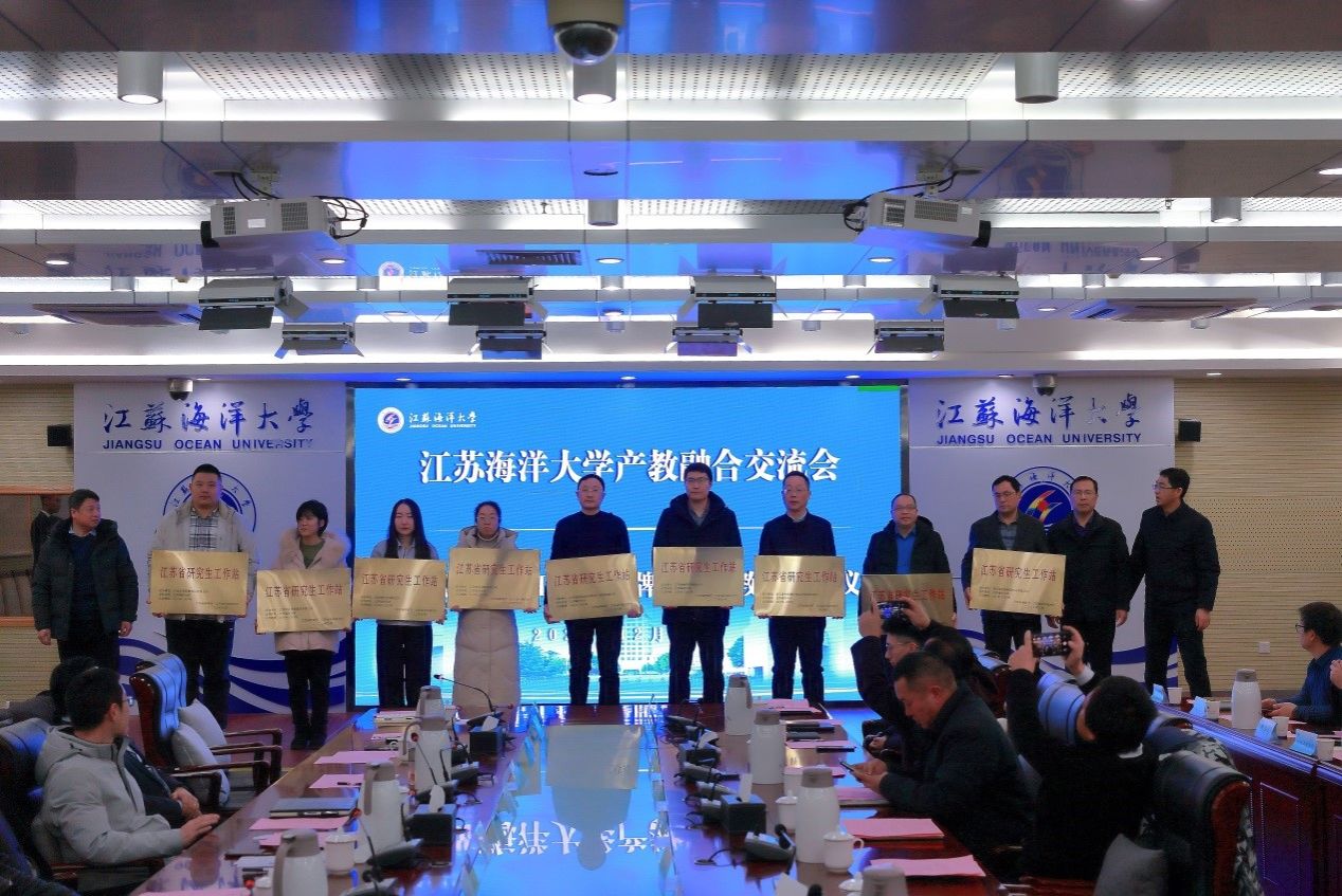 学科建设办公室主任董志国、海洋科学与水产学院党委书记黄金虎、科学技术处副处长房耀维为2023年新设的9家江苏省研究生工作站授牌,并为2023年新聘的5位江苏省产业教授颁发聘书。