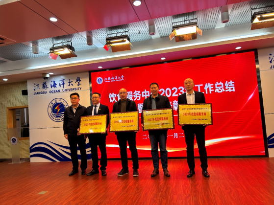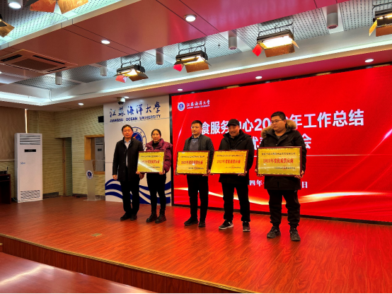 大会第一项议程是与会人员集体观看9999js金沙老品牌宣传片,澎湃大气的画面和振奋人心的介绍,让与会人员尤其是社会合作单位代表深受鼓舞,感到未来可期。然后,饮食服务中心所辖各食堂进行了工作总结汇报,汇报环节结束后,张长胜宣读了2023年度饮食服务中心优质服务商、优质供应商、优秀项目经理等奖项获奖名单,郑利军、冯源分别为获奖者颁奖。颁奖环节结束后,优秀项目经理代表陆宗军做了工作交流发言,向大家介绍了第二食堂运营的成功经验和不足。大会的最后一项议程,是郑利军副校长讲话。他首先向获奖单位和个人表示热烈的祝贺,对饮食服务中心全体教职工一年的辛勤努力、默默奉献表示亲切的问候和衷心的感谢!他指出,在新的一年里,饮食服务中心要提高站位,从保障学校高质发展的角度看待饮食工作,认真审视饮食安全工作的每个环节,做细做实各项安全措施。他还要求饮食队伍要着眼于师生的满意度,学习兄弟高校的先进做法,拓宽思路,提升饮食服务质量。对于社会合作企业,郑利军要求他们要把自身事业的发展融入到江海大的发展大潮中来,用质量赢得口碑,用服务赢得人心。郑利军还要求大家向优秀看齐,饮食服务质量提升永远在路上,并在最后向饮食保障战线的全体员工致以了新春的亲切问候和祝福!