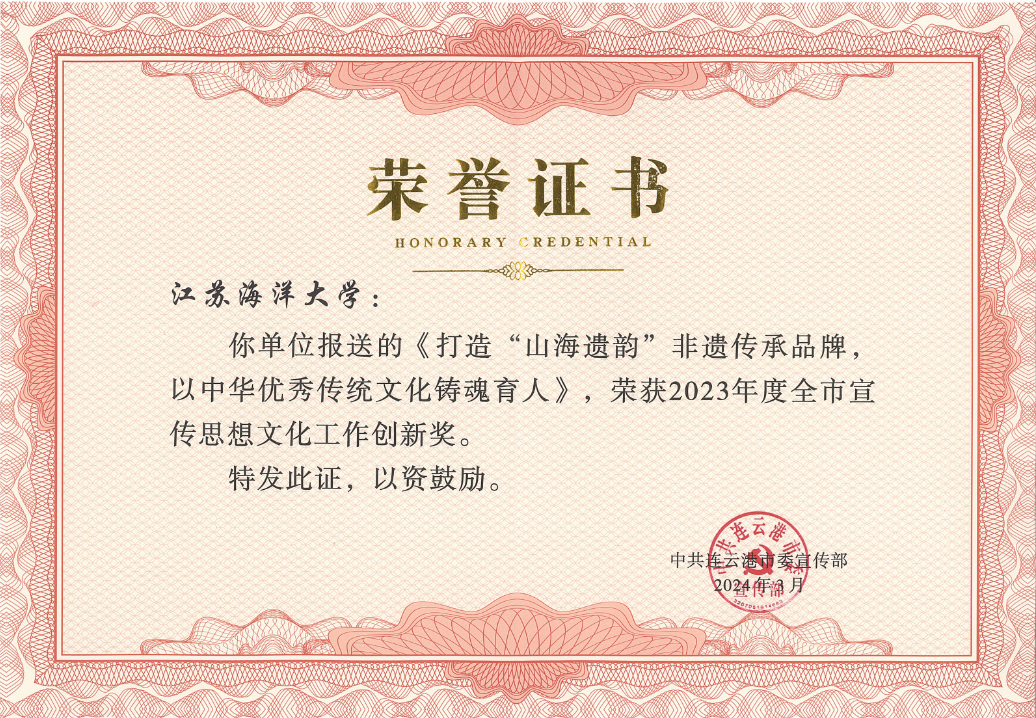 3月1日下午,全市宣传部长会议举行。会议总结2023年工作,分析当前形势,研究部署今年任务,对2023年度宣传思想文化工作创新项目、先进集体、外宣工作和优秀个人等进行了表彰。我校党委宣传部获评全市宣传思想工作先进集体,“打造‘山海遗韵’非遗传承品牌,以中华优秀传统文化铸魂育人”项目获评全市宣传思想文化工作创新奖,“对话人民楷模 传承红色基因”短视频荣获全市十佳外宣作品。