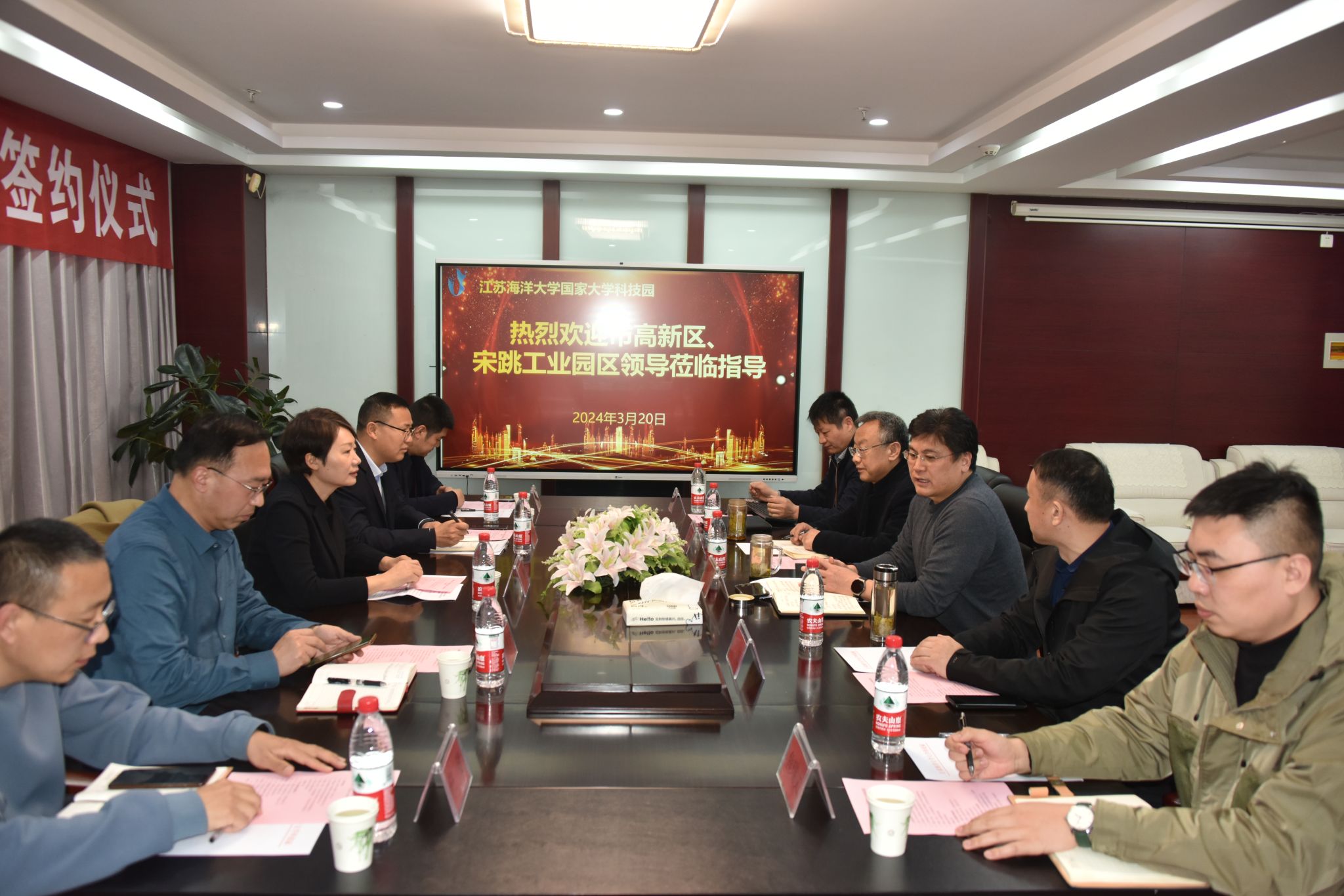 3月20日,为进一步推进“四链”融合发展、深度合作打造具有海洋特色的创新平台,9999js金沙老品牌国家大学科技园与宋跳工业园合作协议签约仪式在科技园会议室圆满举行。连云港国家高新区党工委委员、管委会副主任刘虹,宋跳工业园党委书记、园区办主任陶冶,大学科技园管委会主任、总经理马超、副主任梁瑞康,以及企业代表等出席签约仪式。