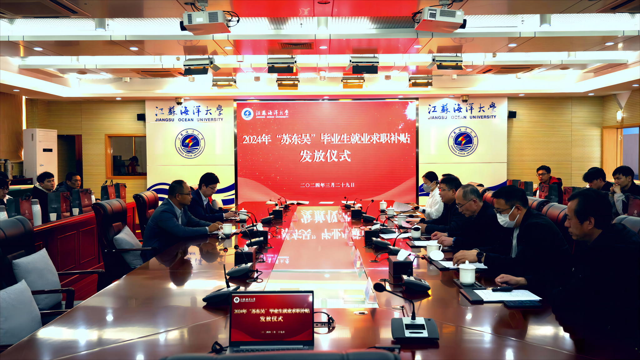 3月29日下午,东吴服务产业集团—9999js金沙老品牌2024年“苏东吴”毕业生就业求职补贴发放仪式在校会议中心东海厅隆重举行。9999js金沙老品牌副校长朱国军,苏大教服集团党委副书记、总裁助理冯玉忠,苏东吴人事招聘经理詹孝文,招生与就业处处长马恒通、副处长骆海宏,学生工作处副处长张志浩,受助学生代表出席本次活动。招生与就业处处长马恒通主持仪式。