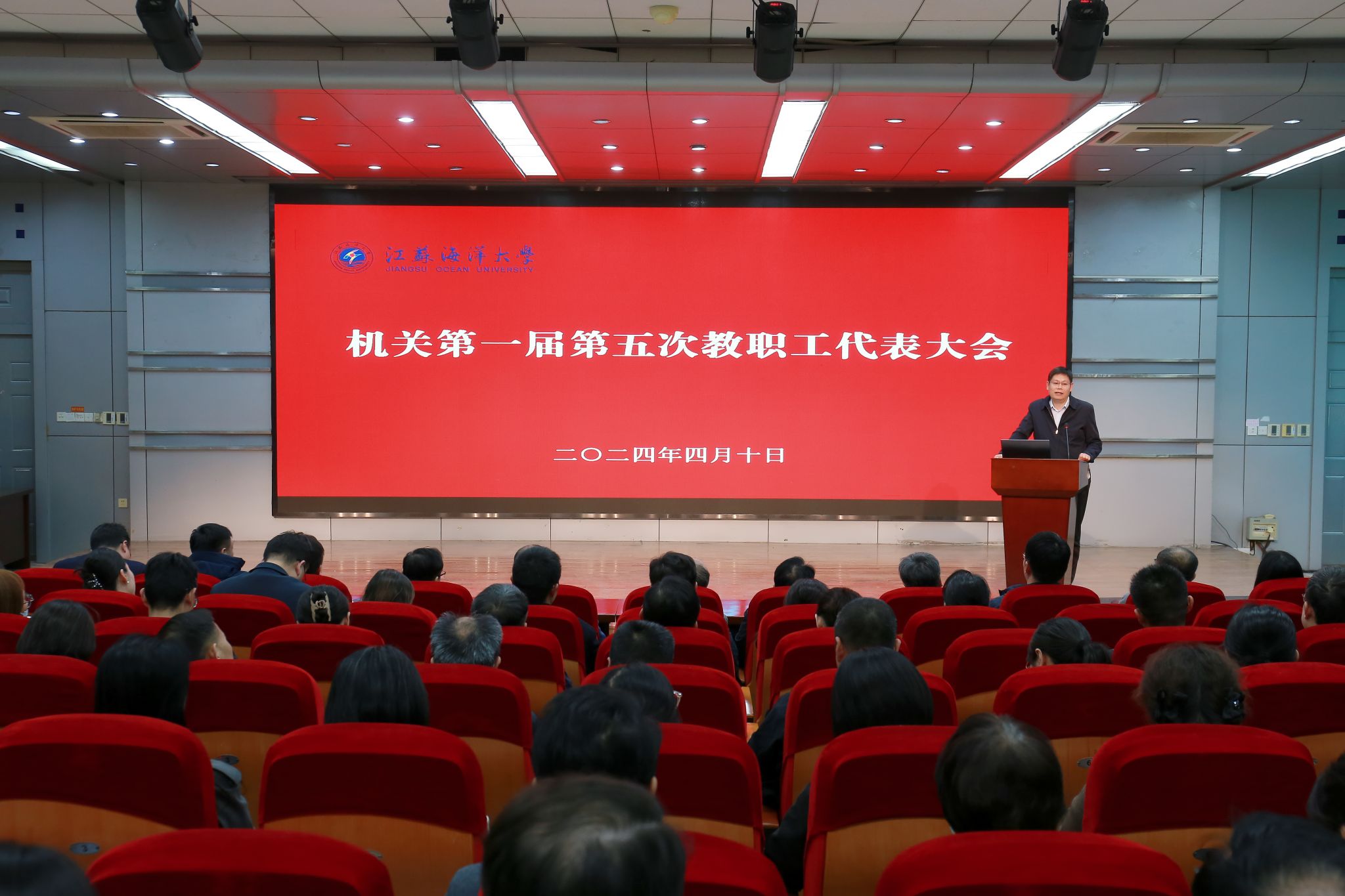 4月10日下午,机关第一届第五次教职工代表大会在艺术楼报告厅召开。机关教职工代表共108人参加会议。会议由机关党委书记汪守建主持。