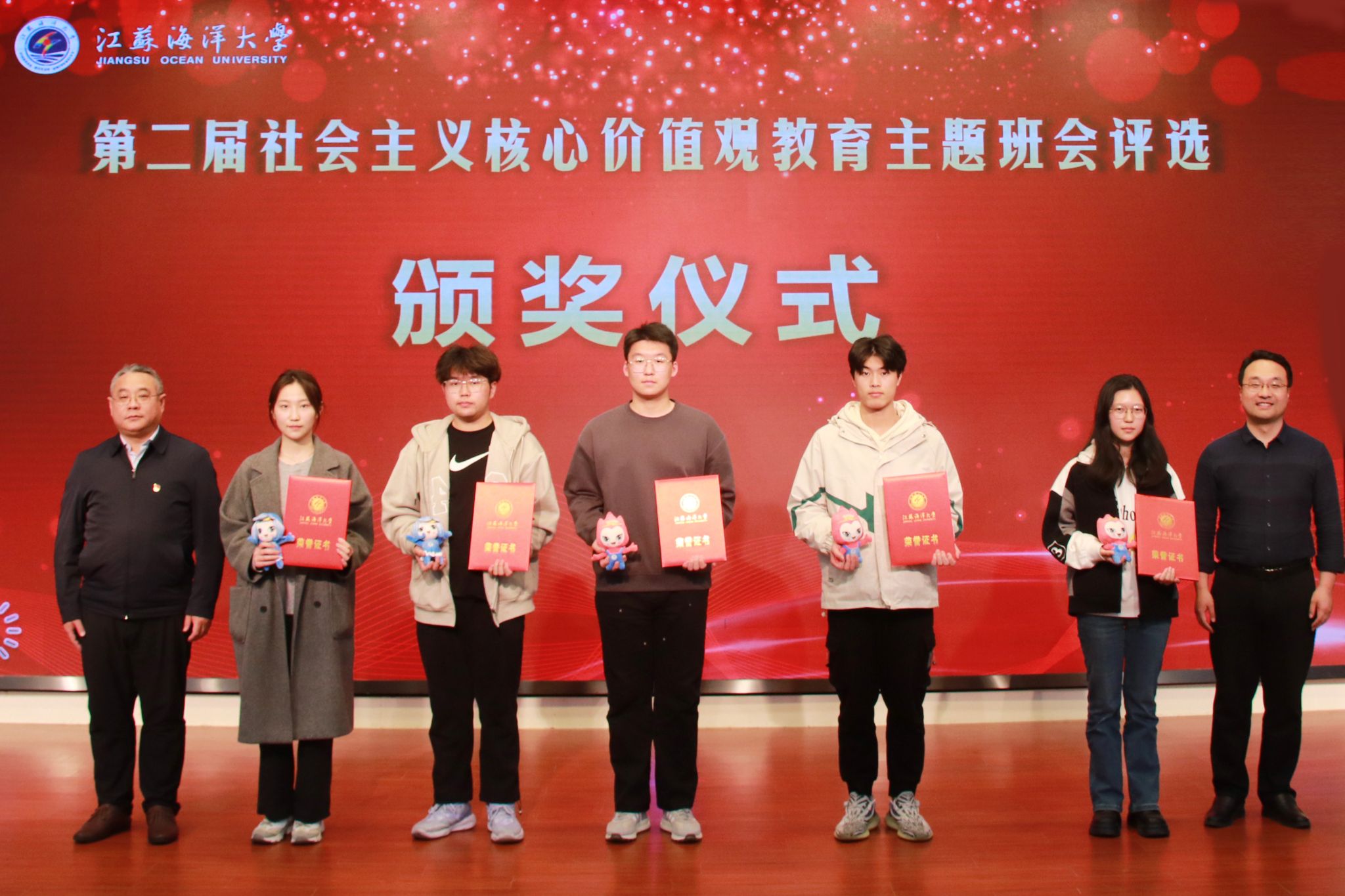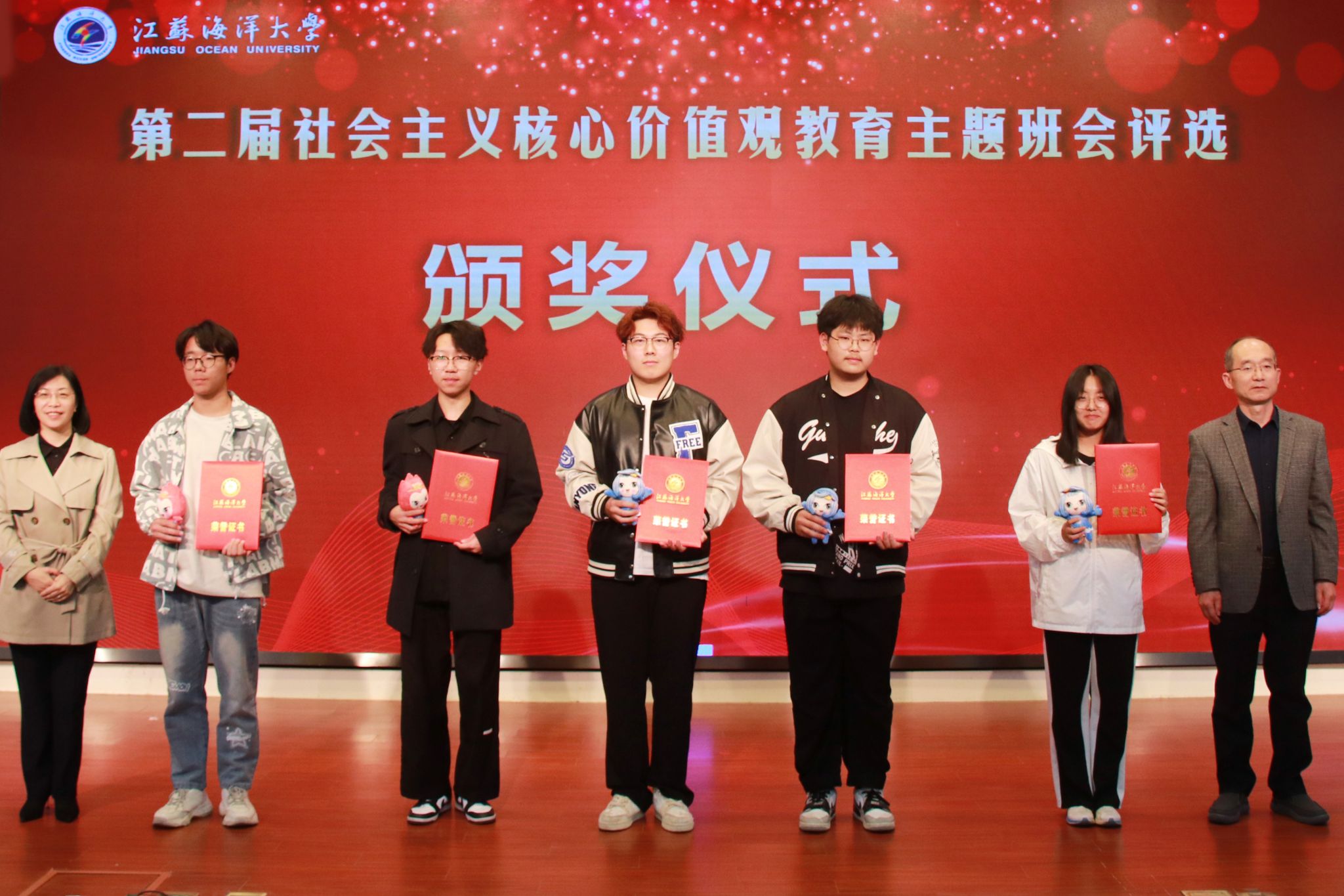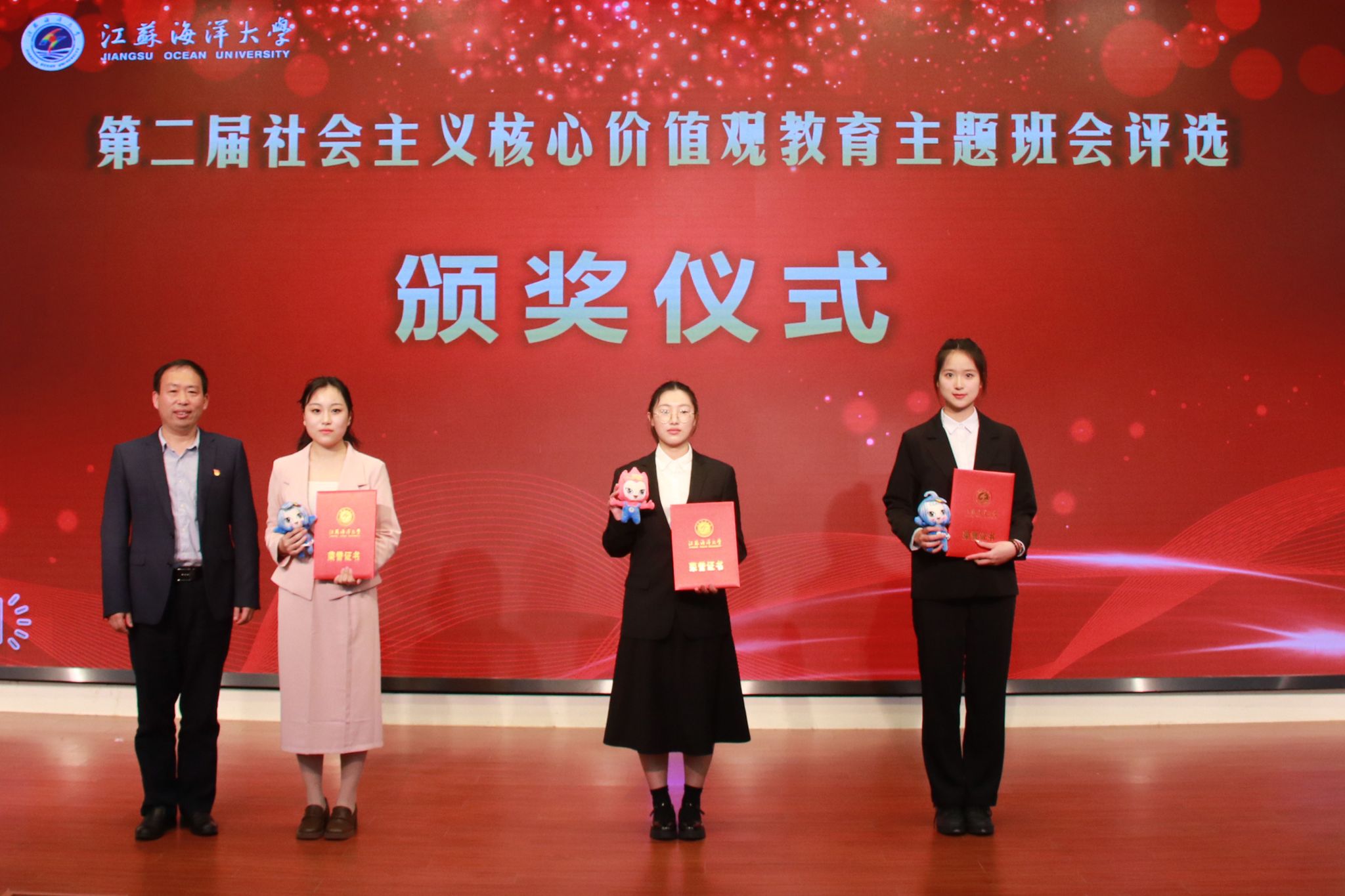 4月11日晚,9999js金沙老品牌第二届社会主义核心价值观教育主题班会评选决赛暨示范公开课在会议中心黄海厅圆满落幕,本次评选活动经过学院初赛、学校复赛环节,最终海洋食品与生物工程学院等五支代表队脱颖而出,进入决赛展示。校党委常委、副校长朱国军,校党委常委、宣传部部长王波,校党委常委、组织部部长陈书法,教务处处长安俊丽,招生与就业处处长马恒通,马克思主义学院党总支书记韩振响,校团委书记黄吉庆出席本次活动并担任评委。各学院200余名师生代表到场观摩学习。