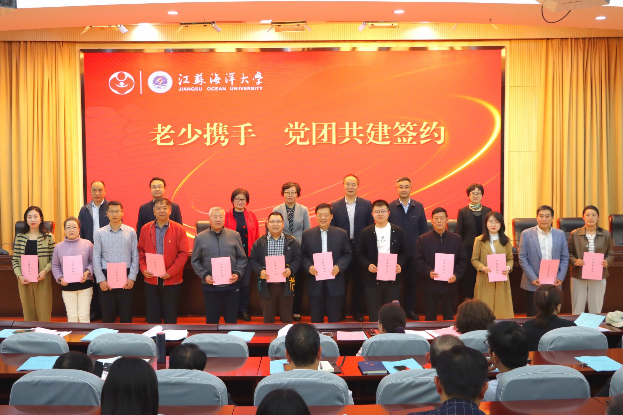 会上。离退休党工委所有离退休党支部分别与土木与港海工程学院学生第一党支部等12个学院师生党支部、分团委集中签署协议,按照“以党建带关建促团建”的要求,老少携手开展党团共建,发挥引领、凝聚、服务青年的作用,推进学校事业高质量发展,为实现学校党代会绘就的“三建一高”宏伟蓝图做出新贡献。