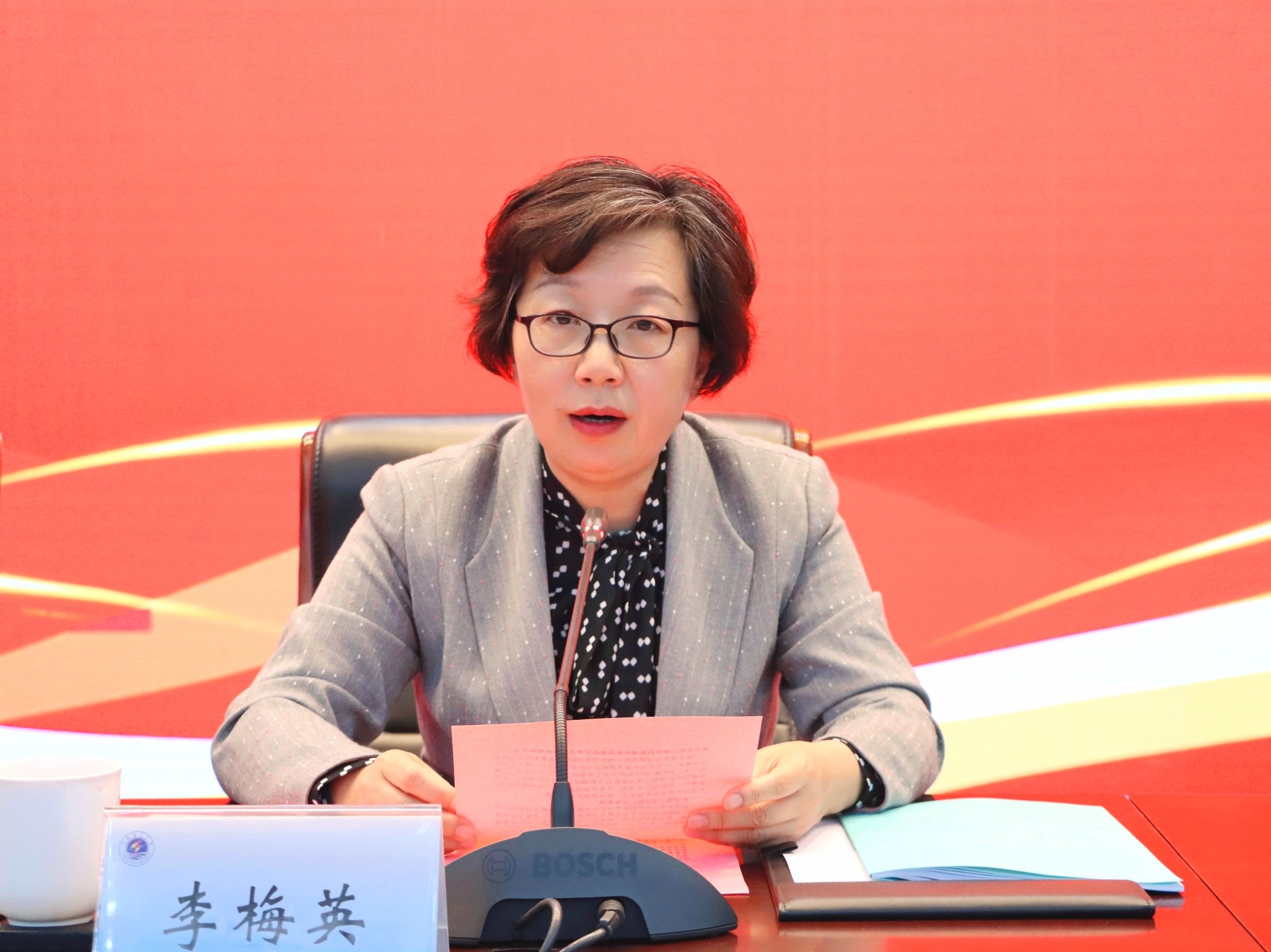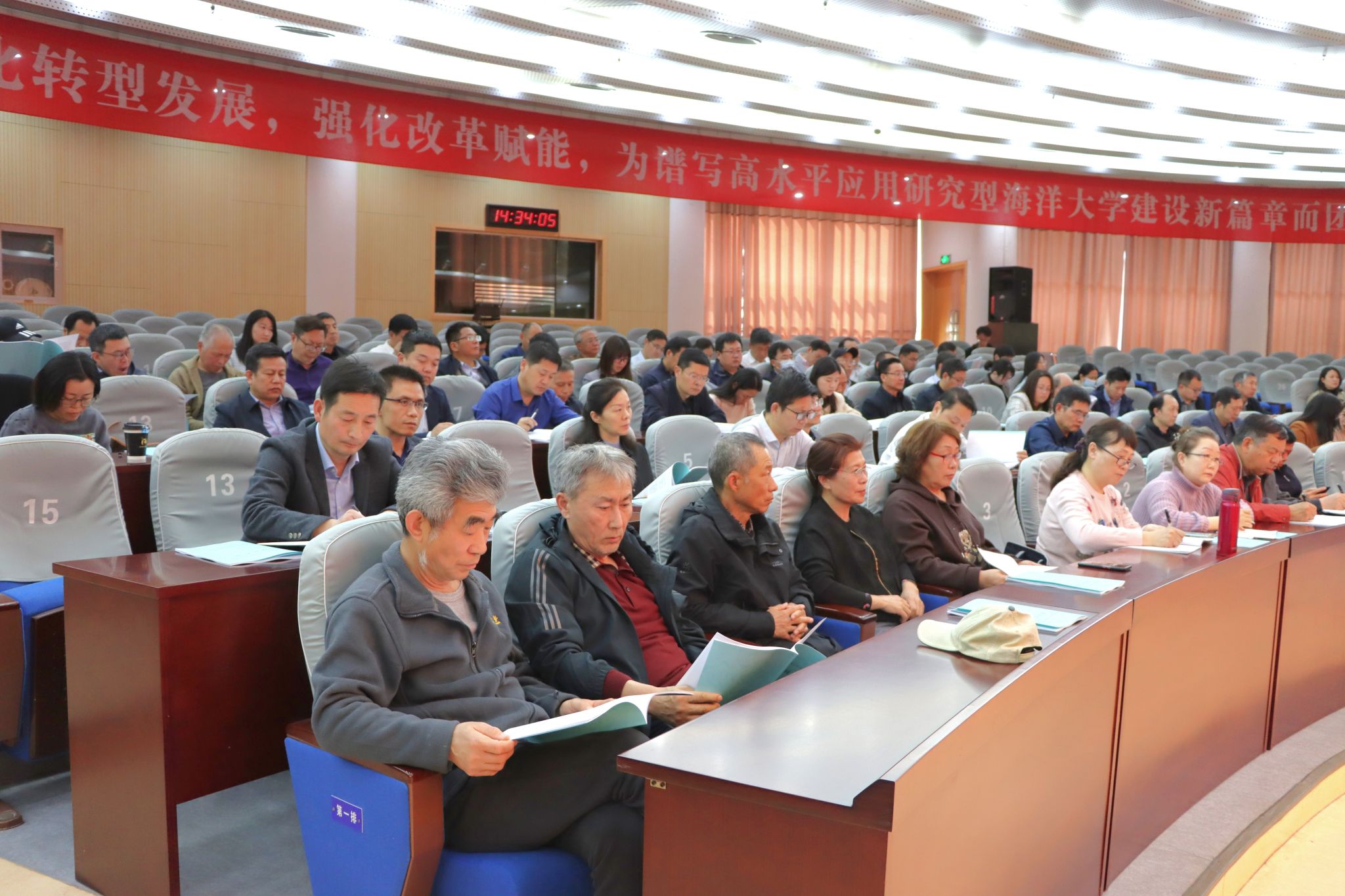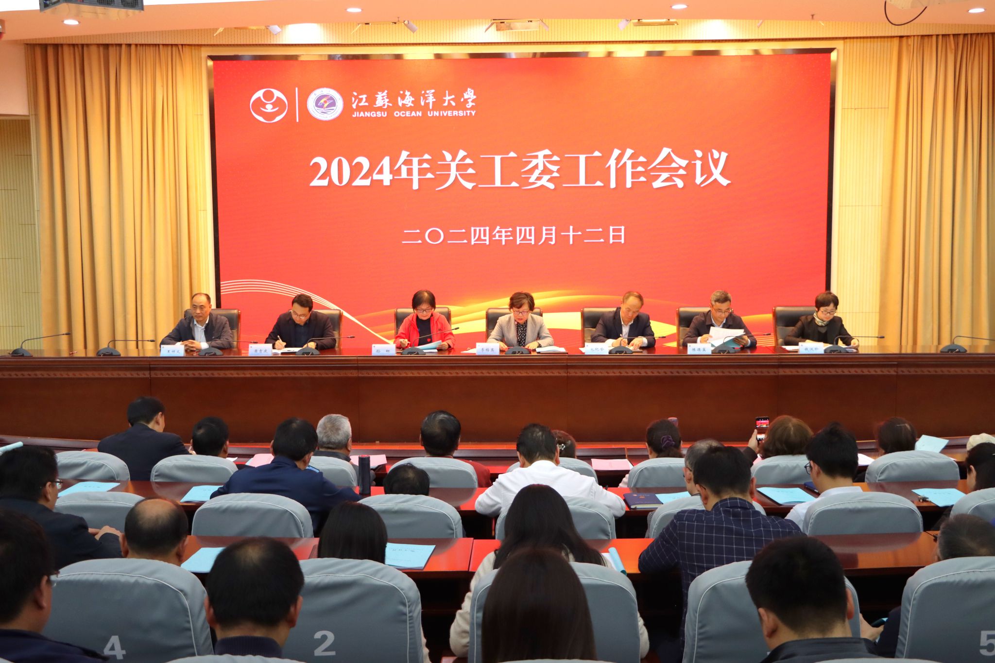 4月12日下午,我校关工委2024年工作会议在会议中心黄海厅召开。校关工委委员、驻会老同志、委员单位负责人、离退休党工委所属党支部书记以及二级学院关工委主任、常务副主任、副主任、秘书长等100余名师生参加会议。会议由校党委副书记、关工委主任李梅英主持。