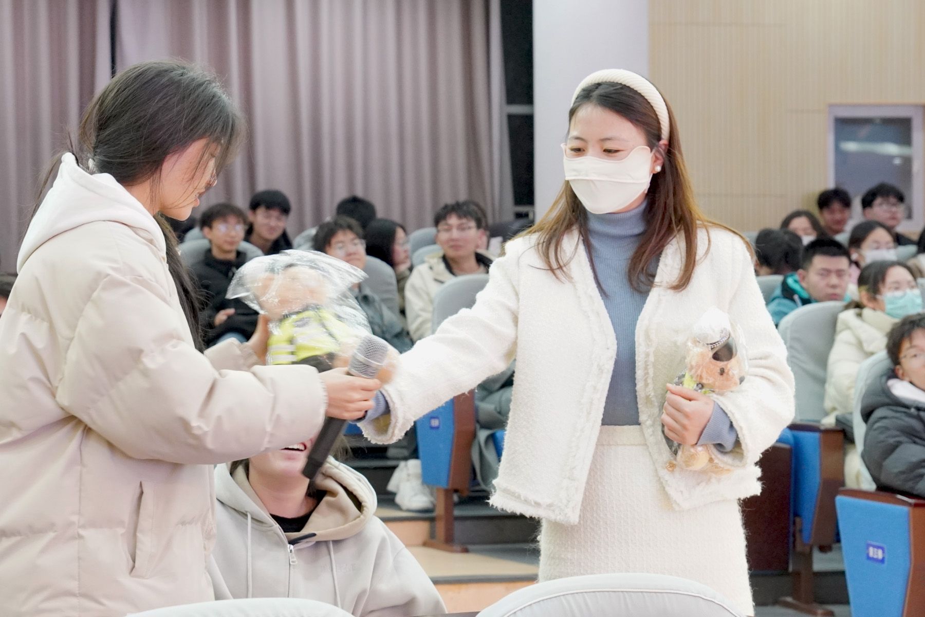 交通安全线下答题现场工作人员为选手送上奖品“交警小熊”