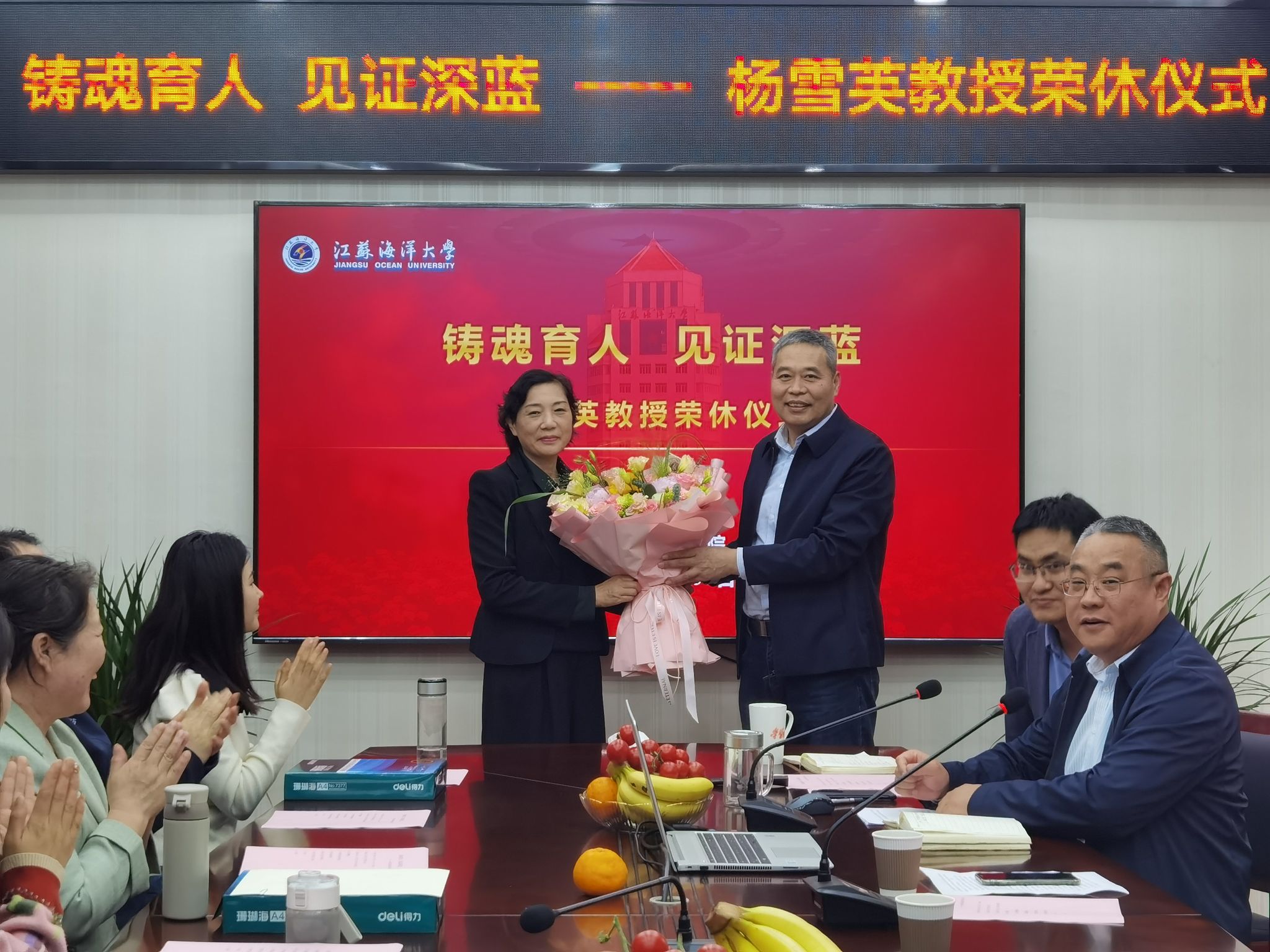 仪式上,学院院长沈春梅、组织员张学武分别为杨雪英教授赠送纪念品、献上鲜花,并表达了感谢和祝福。