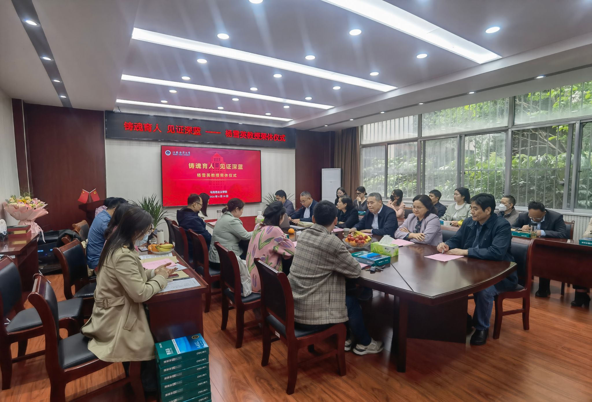 为进一步弘扬尊师重教优秀传统,向退休教职工表示感谢和祝福,激励青年教师践行思政课教师的初心和使命,4月30日,马克思主义学院在学院会议室为杨雪英教授举办荣休仪式。学院全体班子成员、教职工参加荣休仪式,仪式由学院党总支书记韩振响主持。