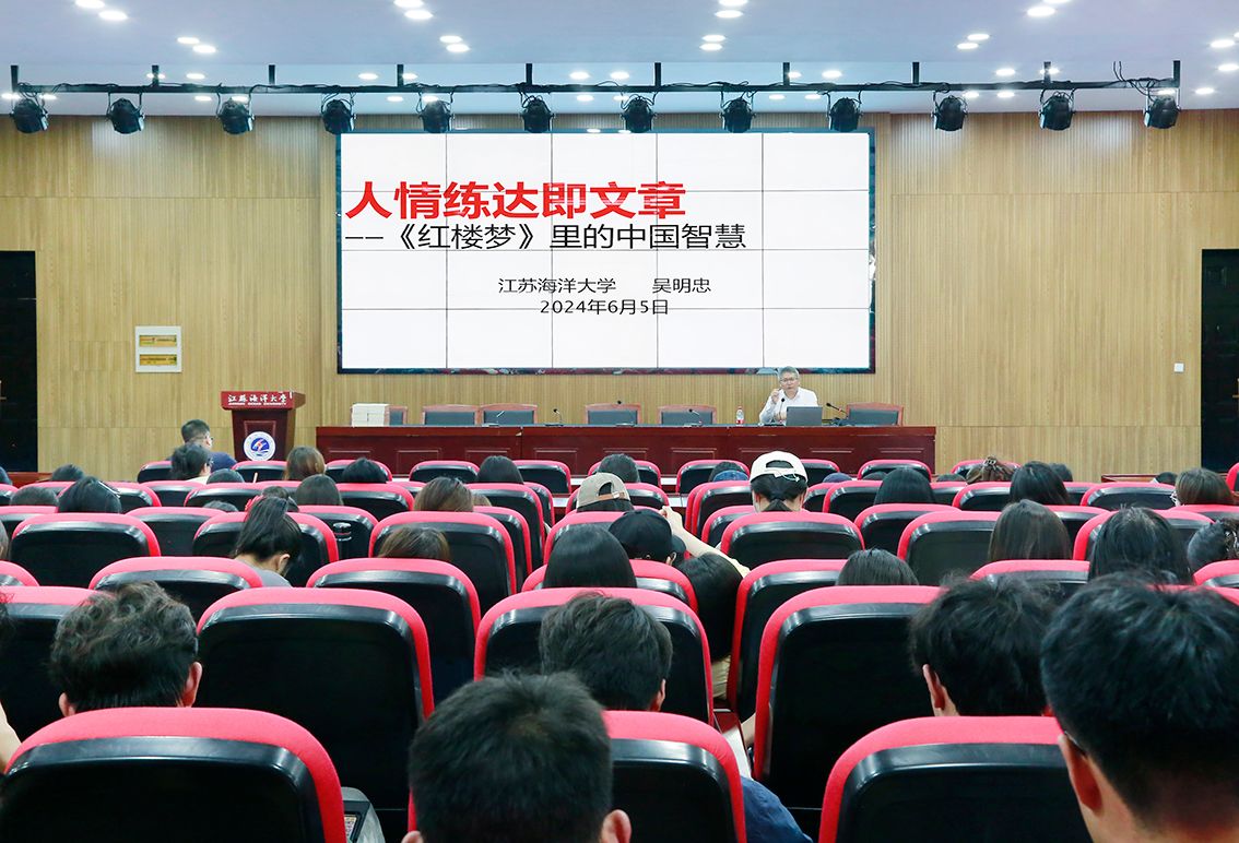 6月5日下午,应用技术学院敦行楼201报告厅座无虚席,一场期待已久的中华优秀传统文化讲座《人情练达即文章—<红楼梦>里的中国智慧》拉开帷幕。文法学院院长吴明忠教授带领现场学生赏析《红楼梦》。应用技术学院院长张根友主持讲座。