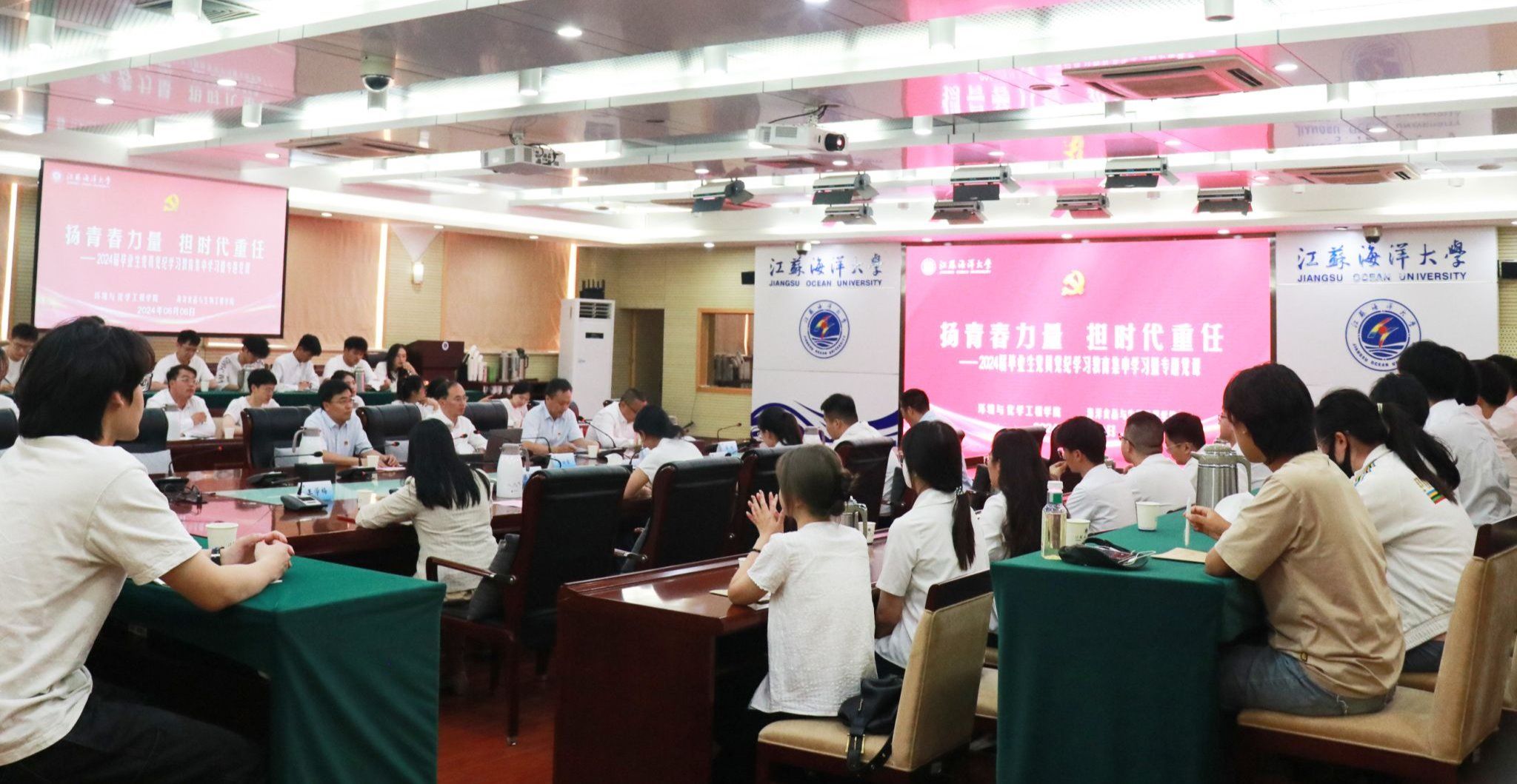 为深入开展党纪学习教育,引导毕业生党员坚定理想信念,强化责任担当,在未来学习和工作岗位上继续发扬党员的先锋模范作用,6月6日下午,环境与化学工程学院、海洋食品与生物工程学院联合举办“扬青春力量,担时代重任”2024届毕业生党员党纪学习教育专题党课。校党委常委、纪委书记、省监委派驻监察专员徐双俊讲授专题党课,各学院党委书记、副书记、党支部书记和毕业生党员参加党课学习。党课报告会由环境与化学工程学院党委书记张明星主持。
