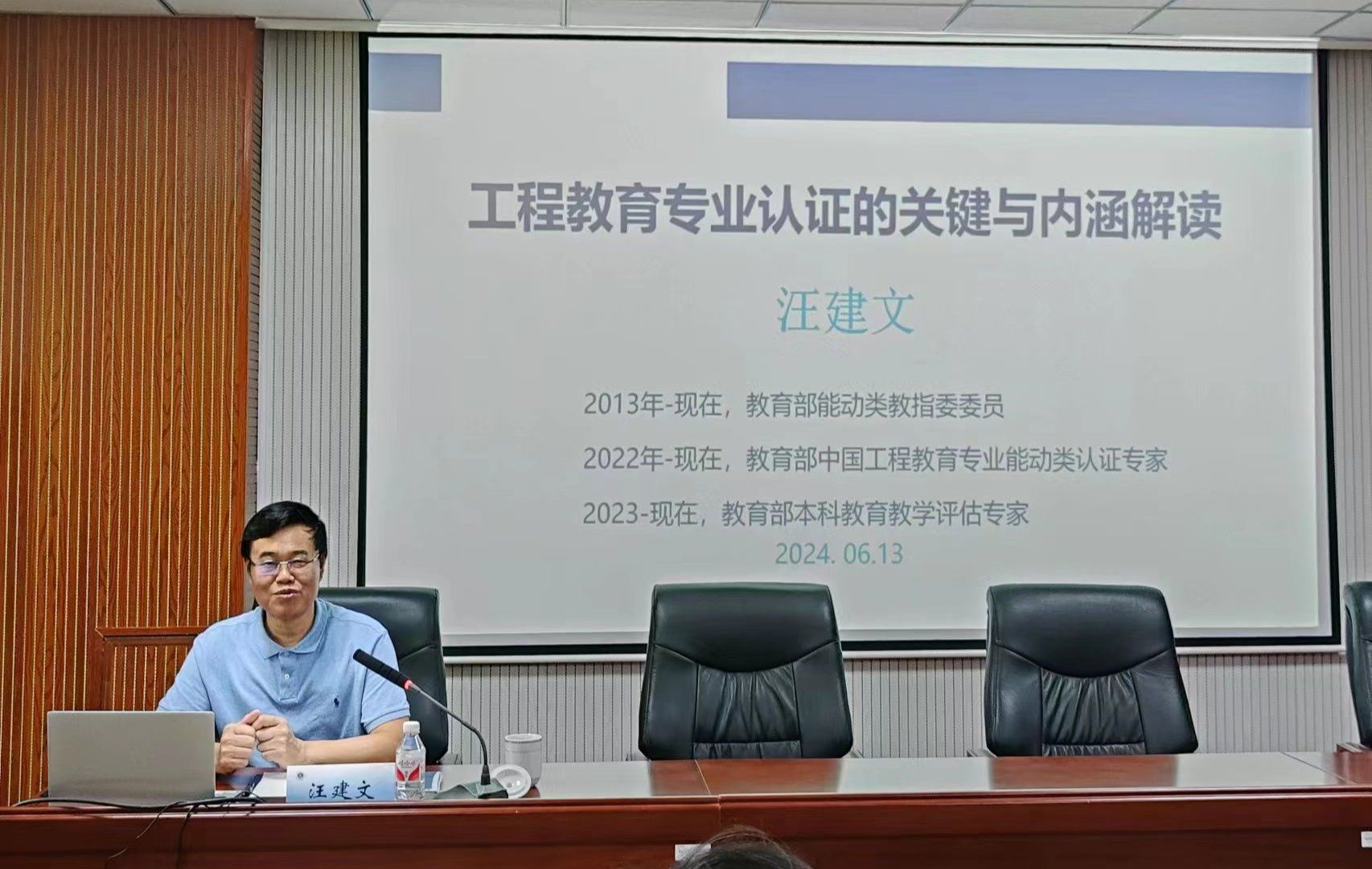 为加快推进理学院在工程教育专业认证进程,确保申请和自评报告撰写质量,使专业认证申请和自评材料达到高标准,同时提升理学院专业建设水平,6月13日,学院邀请教育部能动类教指委委员、中国工程教育专业认证专家、本科教育教学审核评估专家、内蒙古工业大学汪建文教授,为学院师生带来题为《工程教育专业认证的关键与内涵解读》的专题讲座。