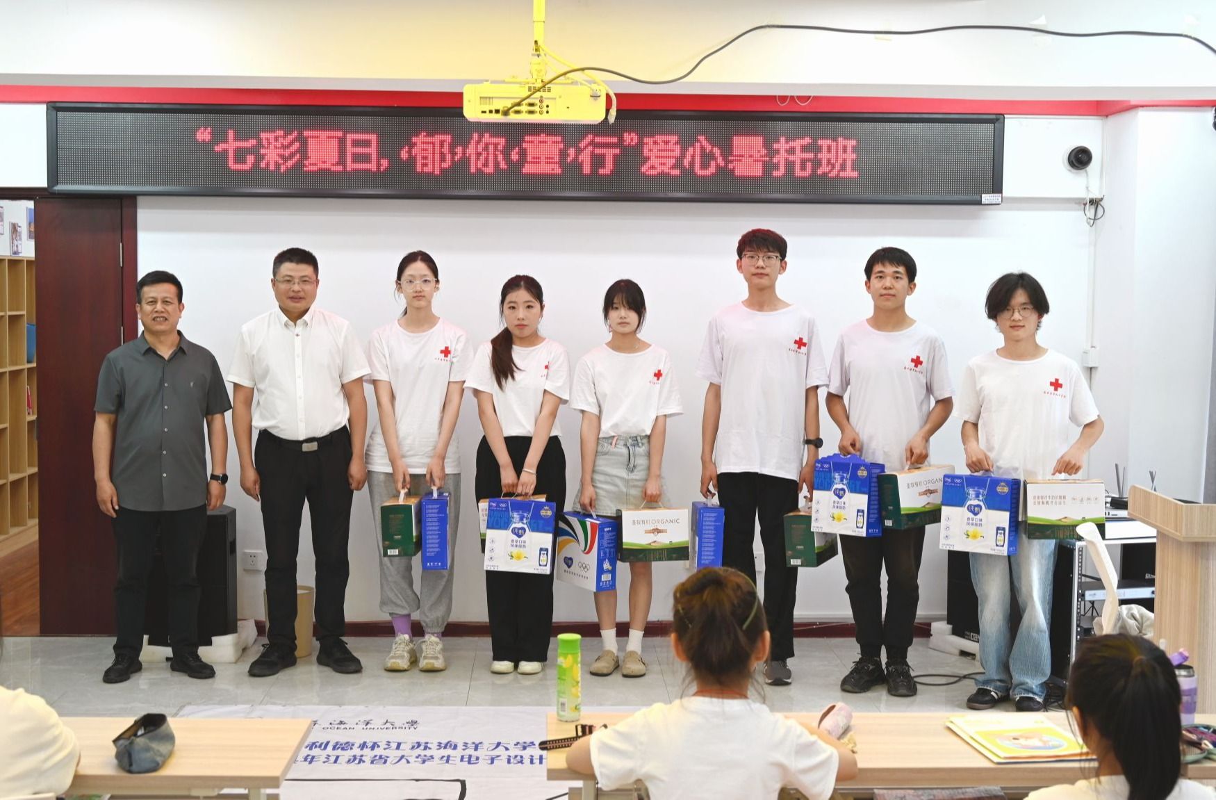 仪式结束后,副校长朱国军在校团委、电子工程学院等单位负责人的陪同下,来到海州区西凤社区看望慰问“七彩夏日,‘郁’你‘童’行”爱心暑托班的暑期社会实践团队,并与西凤社区负责人、实践学生亲切交流。