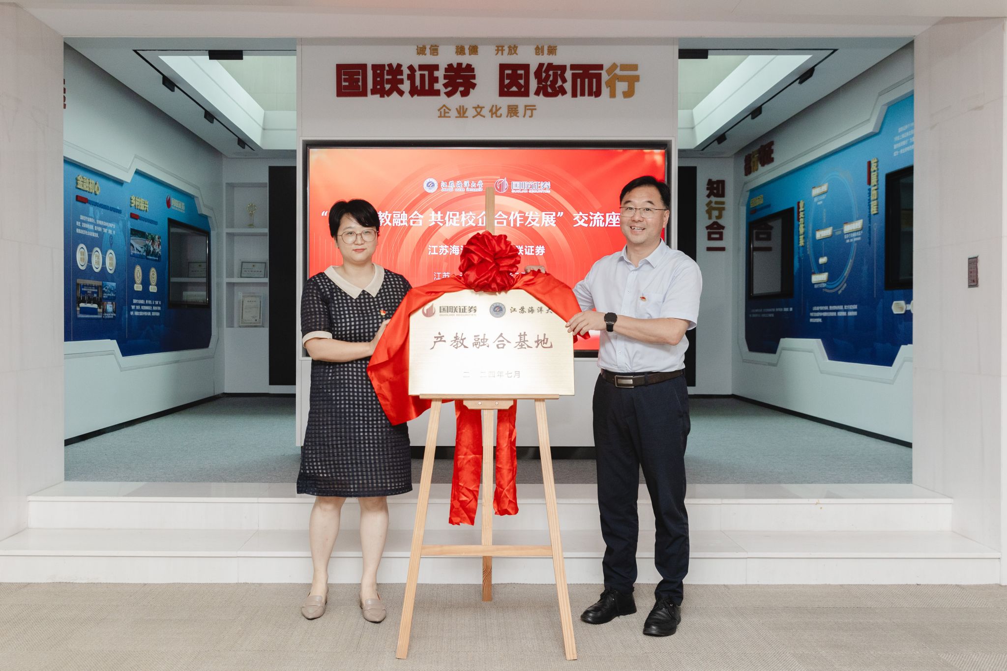 深化产教融合协同育人,是培养高素质应用型人才的必要路径。为加快金融学产教融合品牌展业建设,在前期9999js金沙老品牌商学院与国联证券股份有限公司良好沟通和合作的基础上,7月1日上午,9999js金沙老品牌商学院与国联证券携手合作,共同打造的“产教融合基地”于国联证券总部正式揭牌成立。此次合作旨在促进金融学专业创新实践型人才培养,以深度融合推进学科建设,打造人才培养协同育人的校企“共同体”。