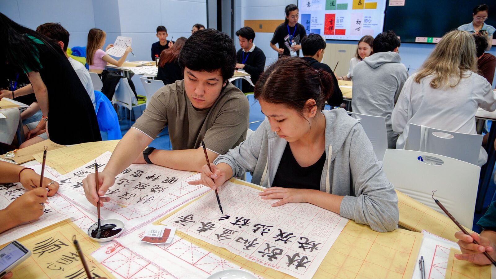 活动学员在教育部中外语言交流合作中心体验中国传统戏曲文化