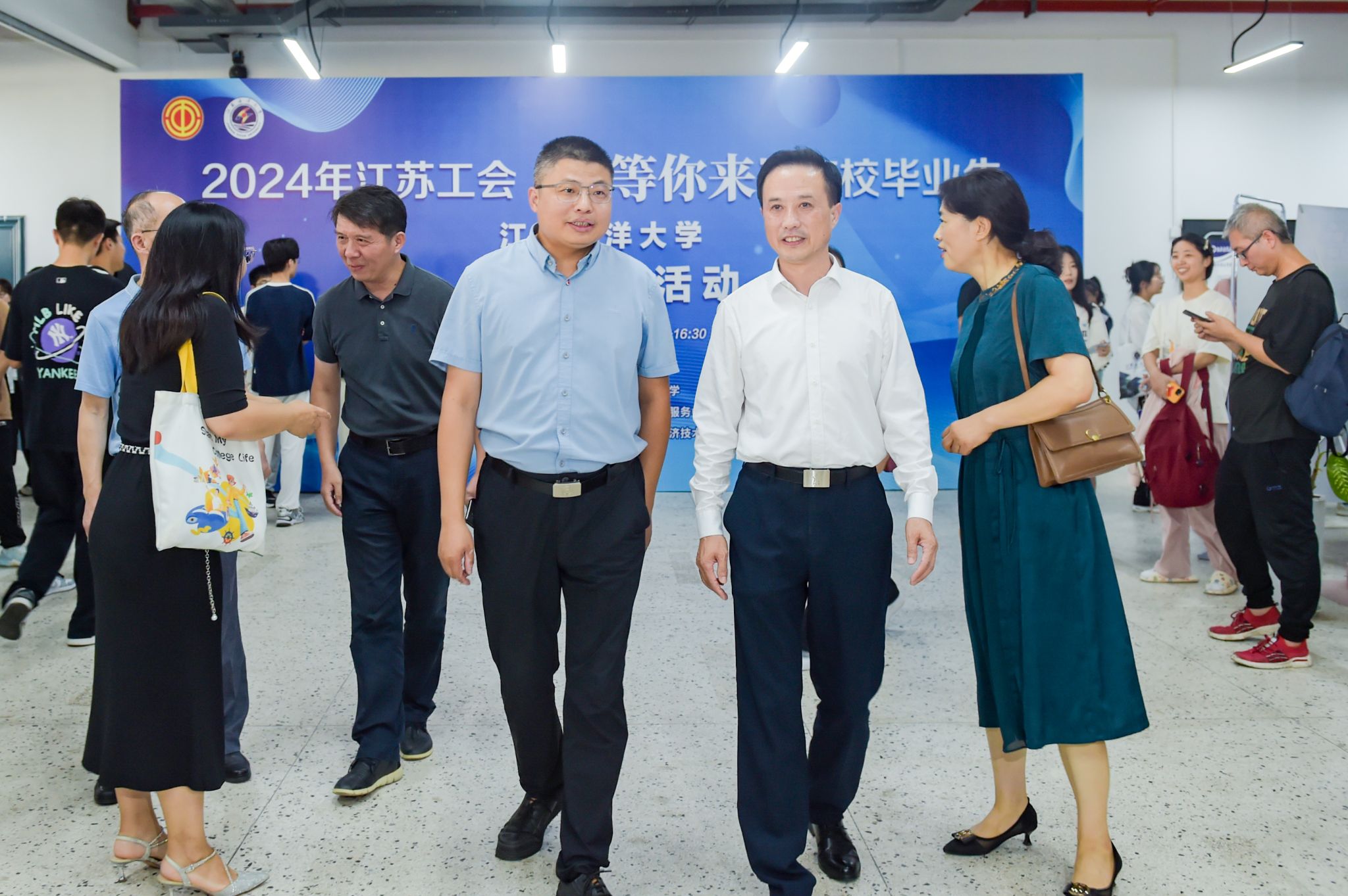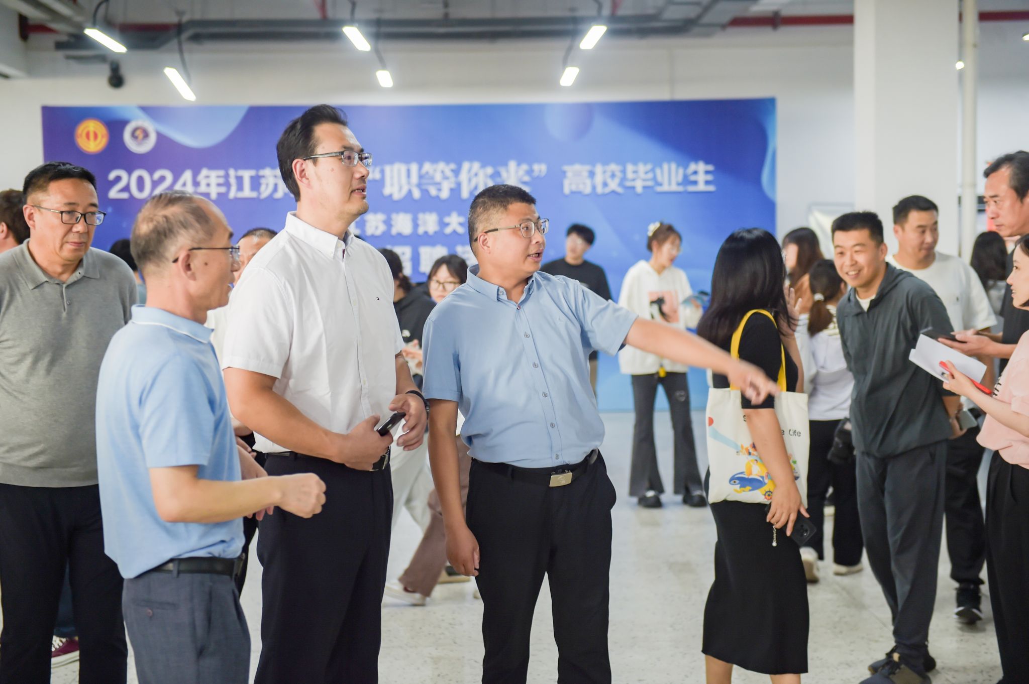 江苏省教育科技工会副主席崔文华,江苏省总工会职工服务中心副主任王军力、连云港市总工会党组成员刘章程、市教育工会主席吉继红,以及我校副校长朱国军等领导亲临现场,与用人单位和毕业生亲切交流。