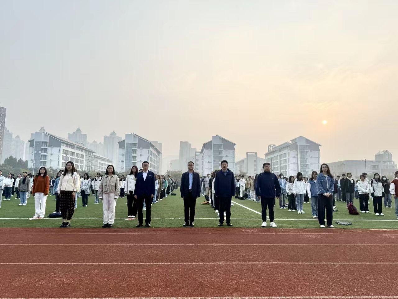 10月11日,我校“铸牢中华民族共同体意识 赓续奋斗争做新时代青年”主题升旗仪式在苍梧校区主运动场举行。理学院、海洋技术与测绘学院师生参加了升旗仪式。