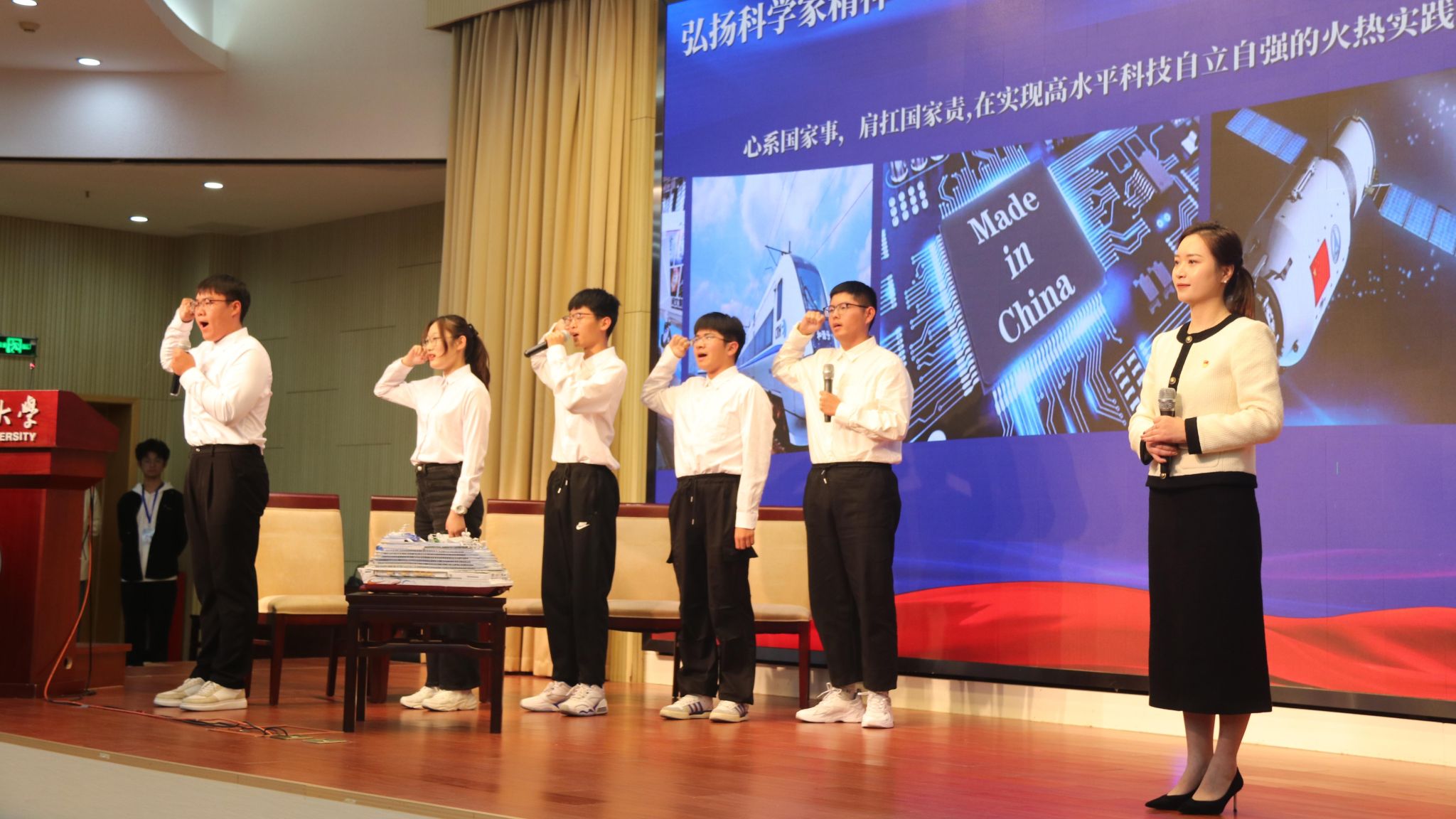 “红帆讲堂”教师宣讲员、海洋工程学院辅导员朱甜甜作主题思政课展示。她生动讲述了老一辈科学家胸怀祖国、勇攀高峰、科技报国的故事,鼓励青年大学生要从科学家精神中汲取奋进力量,争做新时代追梦人!