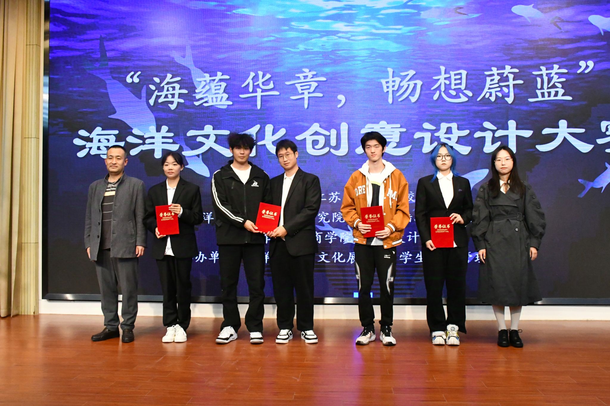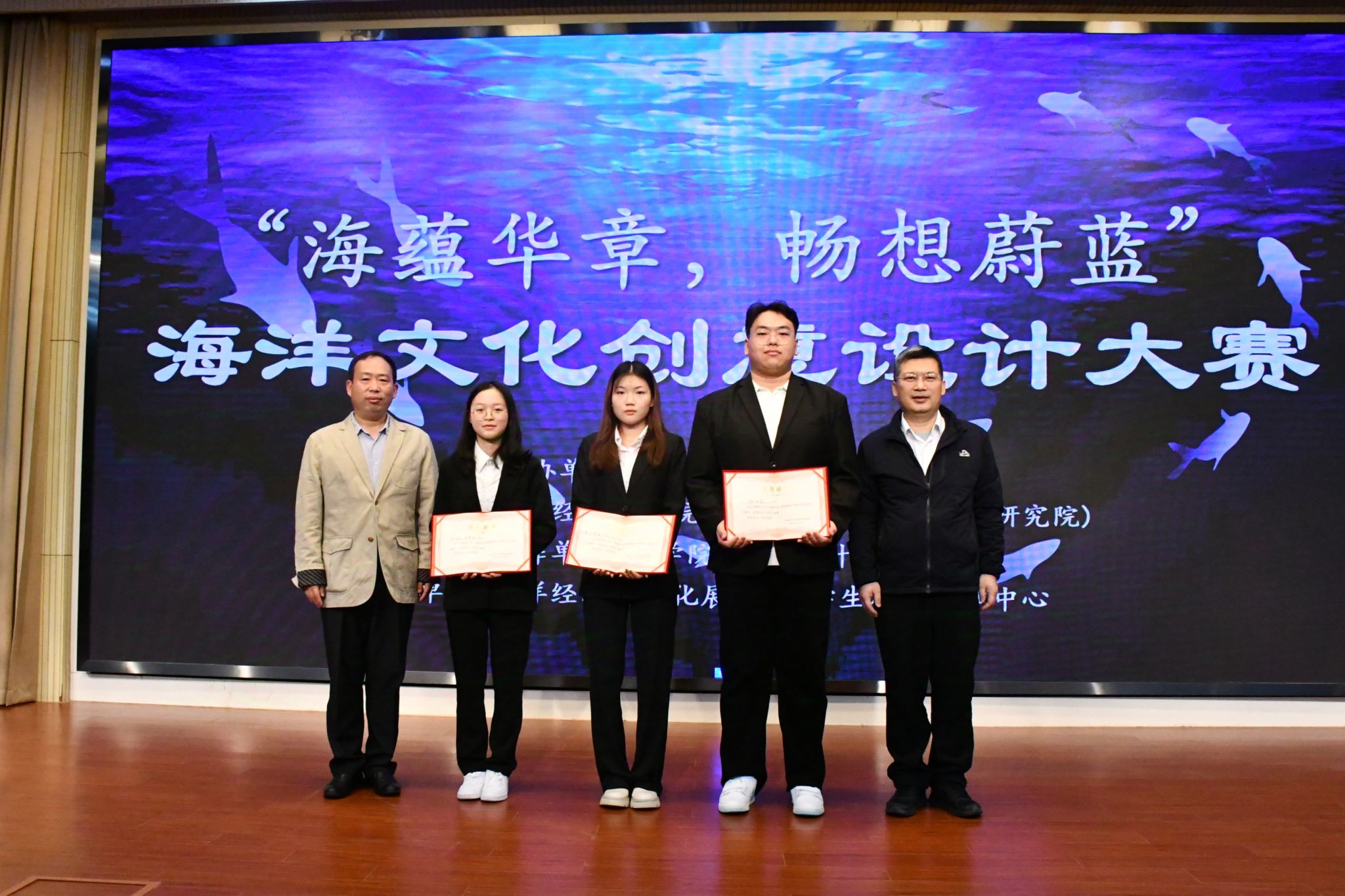 参赛小组以“关心海洋、认识海洋、经略海洋”为主旨,贯彻落实建设海洋强国思想,围绕海洋开发与利用、海洋资源保护与发展、推动海洋和城市文明和谐共生等多方面多维度展开创意设计,借助科技赋能作品设计,同时向广大师生推介海洋经济与文化社科普及知识,宣传海洋命运共同体理念。经过激烈角逐和评委评审,评选出金奖3名,银奖4名,优作奖4名。