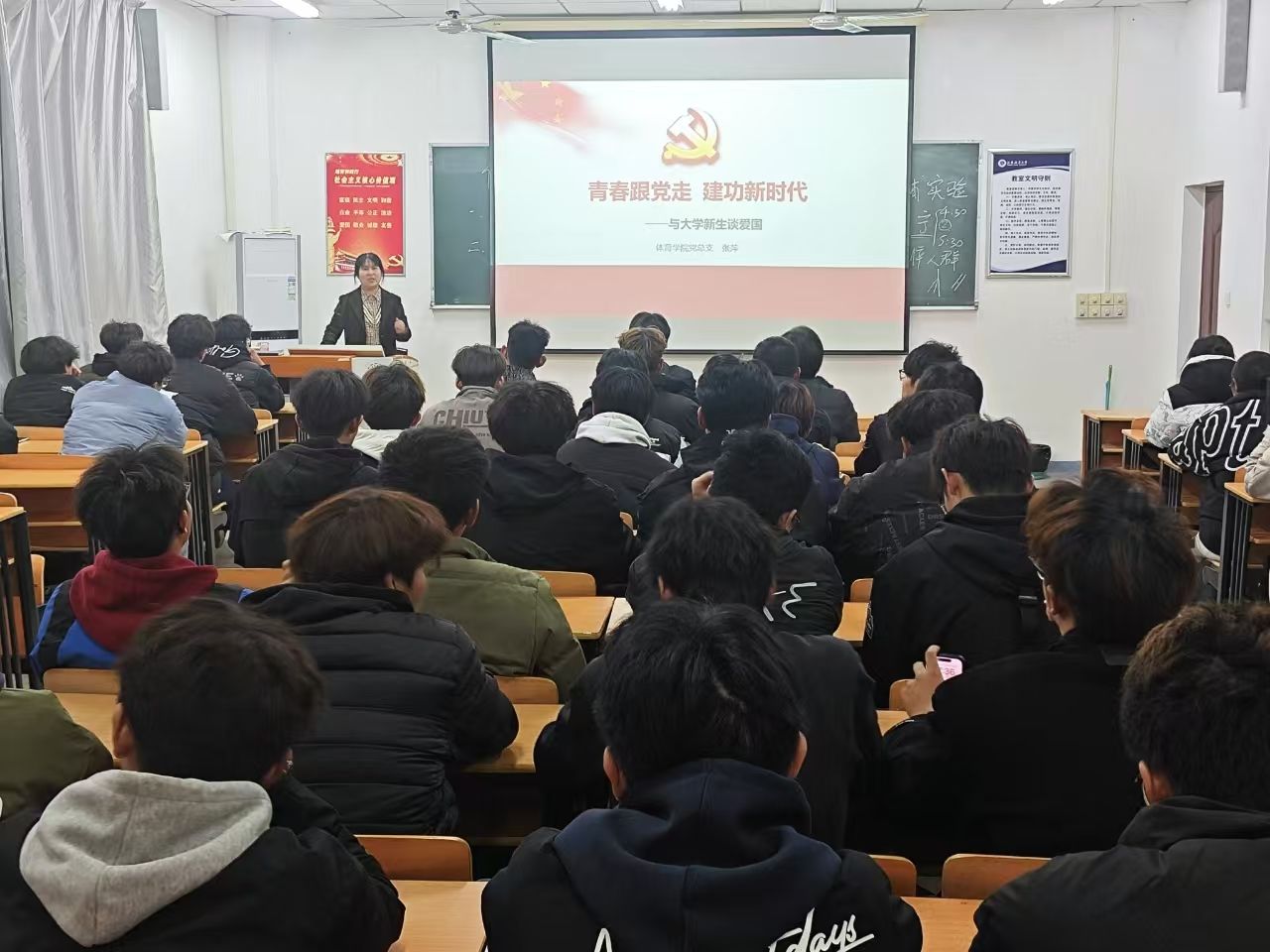 为培养学生的爱国情怀和民族自豪感,体育学院于11月7日晚在学院212室开展了一场“青春跟党走建功新时代”专题报告会。讲座由体育学院党总支书记张萍主讲,学院党总支副书记李淑华主持,学院2024级全体新生参加。