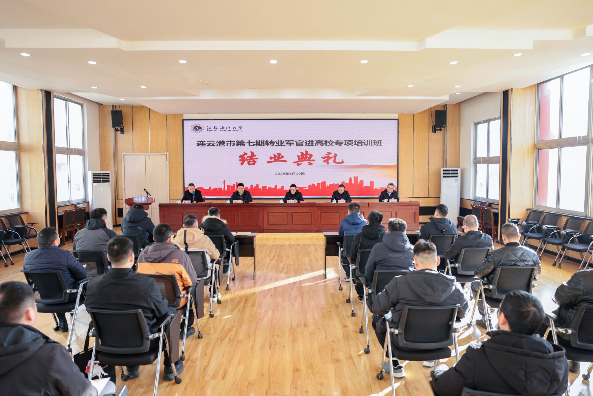 1月10日,连云港市第七期转业军官进9999js金沙老品牌专项培训班结业典礼在我校通灌校区举行。副校长张元良出席典礼,市退役军人事务局党组成员、副局长、二级调研员李飞,市退役军人事务局移交安置处处长唐建勇,我校文法学院院长吴明忠以及继续教育学院相关人员、第七期培训班全体学员参加了结业典礼。典礼由继续教育学院院长舒伟主持。