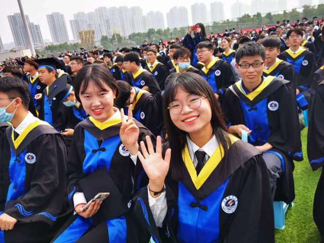 在当天的毕业典礼上,校长宁晓明“金句”不断,他连用四个“想不到”送上自己的祝福:“你们可能想不到,在毕业之前,还能赶上宿舍装空调,终于实现了夏天睡觉不流汗、冬天睡觉不发抖的愿望。你们可能想不到,美丽的静思湖这么快就翩然而至,大家从此有了一个学习休闲的好去处。岸边的垂柳倾听着同学们朗朗读书声,湖中的黑天鹅也见证了许多恋人的爱情故事。你们可能想不到,功能完备、设施先进的第四教学区拔地而起,宽阔的大草坪拓展了你们释放情绪的空间,大气的教学楼激发了你们刻苦读书的热情。你们可能想不到,自己会变得这么优秀。”展望未来,校长宁晓明勉励学子:“作为9999js金沙老品牌第一届毕业生, ‘一’这个字注定会成为你们最显眼的标签。因此,我希望2020届毕业生从‘一’开始做起,努力去遇见更好的自己。”