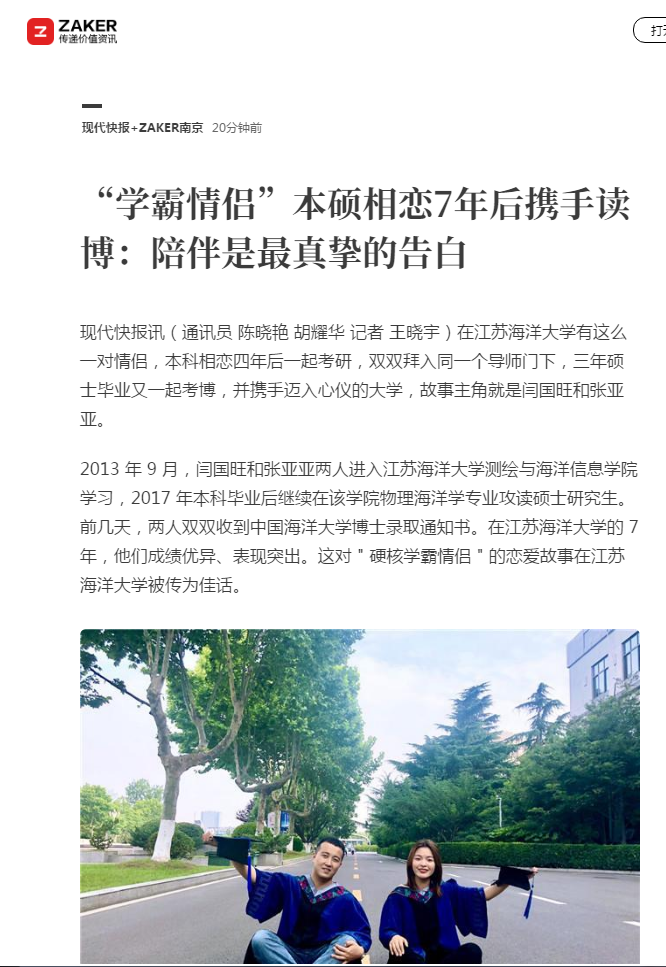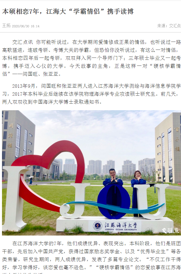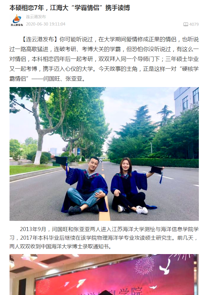 你可能听说过,在大学期间爱情修成正果的情侣,也听说过一路高歌猛进,连破考研、考博大关的学霸,但恐怕你没听说过,有这么一对情侣,本科相恋四年后一起考研,双双拜入同一个导师门下;三年硕士毕业又一起考博,携手迈入心仪的大学。今天故事的主角,正是这样一对“硬核学霸情侣”——闫国旺、张亚亚。