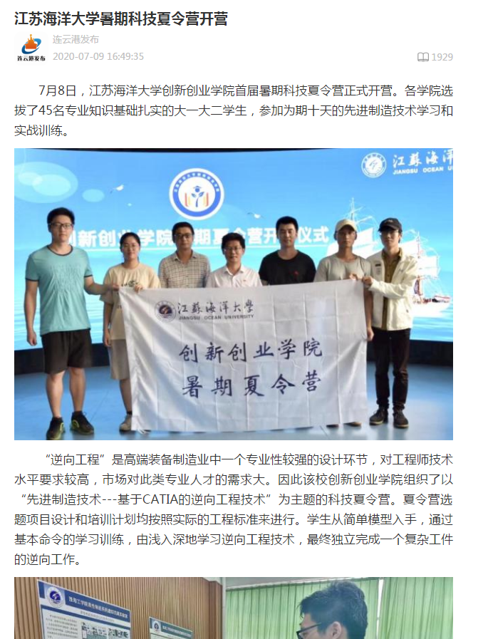 为了让学生学习先进制造技术,掌握前沿科技,夏令营开设了imageware和CATIA两个软件的学习课程,聘请高科技企业专业工程师做实战性培训。同学们学习兴趣浓厚,热情高涨,“我要珍惜这次难得的学习机会,多掌握一些先进技术”该校大二学生徐岚表示。
