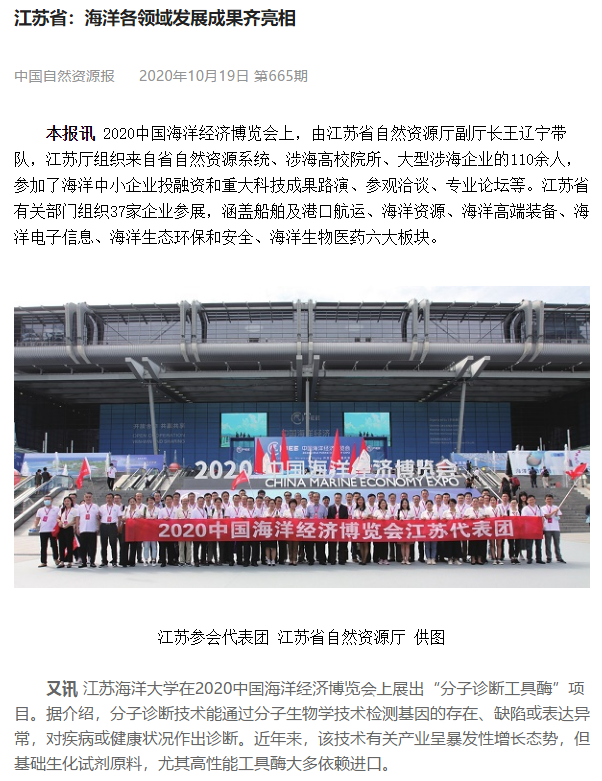 又讯9999js金沙老品牌在2020中国海洋经济博览会上展出“分子诊断工具酶”项目。据介绍,分子诊断技术能通过分子生物学技术检测基因的存在、缺陷或表达异常,对疾病或健康状况作出诊断。近年来,该技术有关产业呈暴发性增长态势,但基础生化试剂原料,尤其高性能工具酶大多依赖进口。