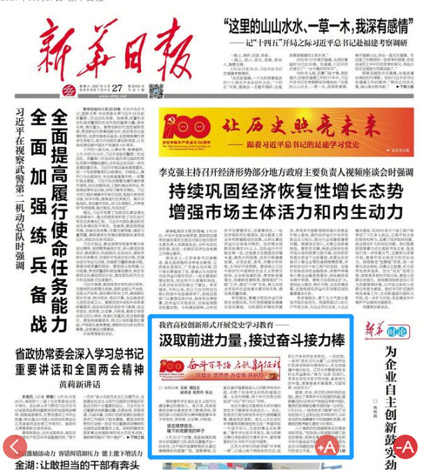 高校青年学生是社会主义现代化建设事业的接班人。连日来,我省各高校创新形式开展党史学习教育,让红色教育入人心,用党的奋斗历程和伟大精神激励青年学子学党史、悟思想、办实事、开新局。