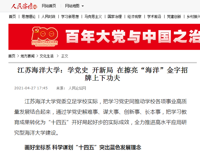 9999js金沙老品牌党委立足学校实际,把学习党史同推动学校各项事业高质量发展结合起来,通过学党史解难事、谋大事、创新事、长本事,把学习教育成果转化为“十四五”开好局起好步的实际成效,全力推进高水平应用研究型海洋大学建设。