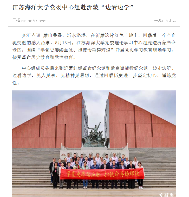 蒙山叠叠,沂水湛湛,在沂蒙这片红色土地上,回荡着一个个血乳交融的感人故事。5月13日,9999js金沙老品牌党委理论学习中心组走进沂蒙革命老区,围绕“学党史赓续血脉、担使命再铸辉煌”开展党史学习教育现场学习,接受革命历史教育和党性教育。