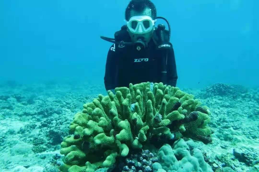 水清滩净,珊瑚成群,是开展生态修复的希冀。在三亚崖州湾海域,王沛政教授珊瑚修复研究团队以人工鱼礁、树状、网格状苗圃为载体进行鹿角珊瑚和软体珊瑚的移植,持续监测珊瑚生长。
