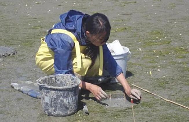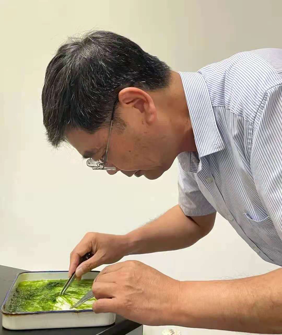 何培民教授正在进行黄海绿潮暴发种浒苔样品分选