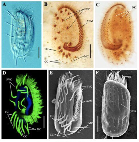 海洋生物多样性与进化研究所赵呈天团队对基因沉默技术在扇形游仆虫中的运用进行了初步的探索。研究团队首先对扇形游仆虫进行了形态描述(图一)。
