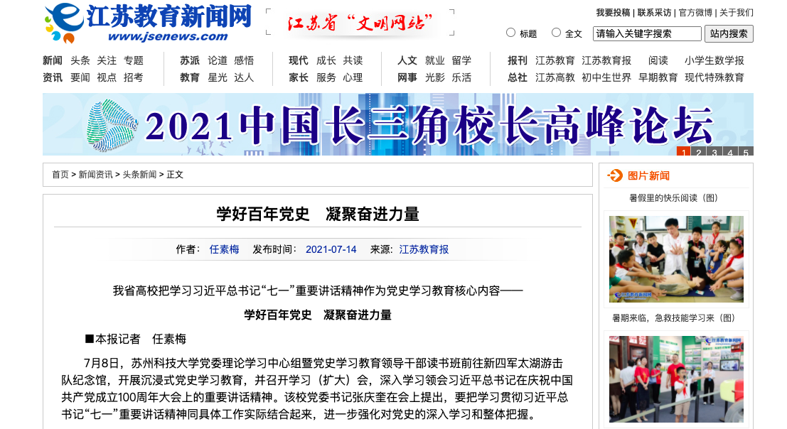 7月8日,苏州科技大学党委理论学习中心组暨党史学习教育领导干部读书班前往新四军太湖游击队纪念馆,开展沉浸式党史学习教育,并召开学习(扩大)会,深入学习领会习近平总书记在庆祝中国共产党成立100周年大会上的重要讲话精神。该校党委书记张庆奎在会上提出,要把学习贯彻习近平总书记“七一”重要讲话精神同具体工作实际结合起来,进一步强化对党史的深入学习和整体把握。