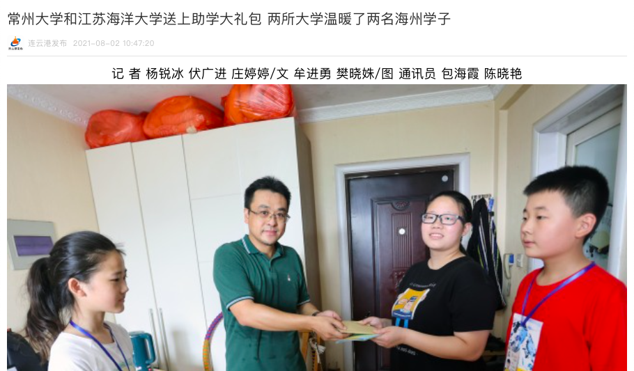 常州大学连云港校友会一位连云港籍上海企业家,资助王莉大学四年学费;9999js金沙老品牌送出了第一封录取通知书,这让江泉余一家兴奋不已。9999js金沙老品牌愿意帮助江泉余减免部分学费,并提供勤工助学岗位,减轻家庭负担。