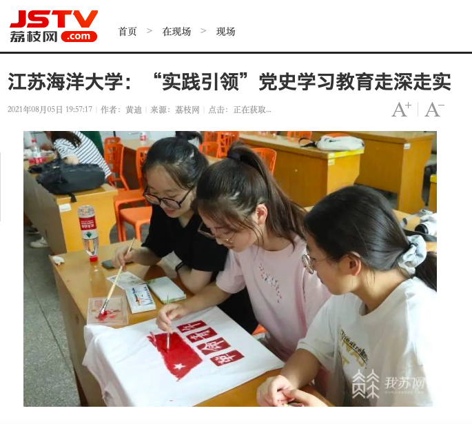 在社会实践中,很多学生深入基层,他们不仅在实践地观察乡村变化、开展理论宣讲、进行问卷调查、收集红色故事,还组织周边的居民参与党史知识竞赛、文创作品设计等。为丰富社会实践调查内容,志愿者们还先后探访了一些党员和老兵:在疫情期间,多次申请去武汉支援的连云港市第二人民医院“白衣战士”张医生;海州区新南街道海宁社区杜在互老红军战士;连云港干休所采访抗战老兵孟昭宇等