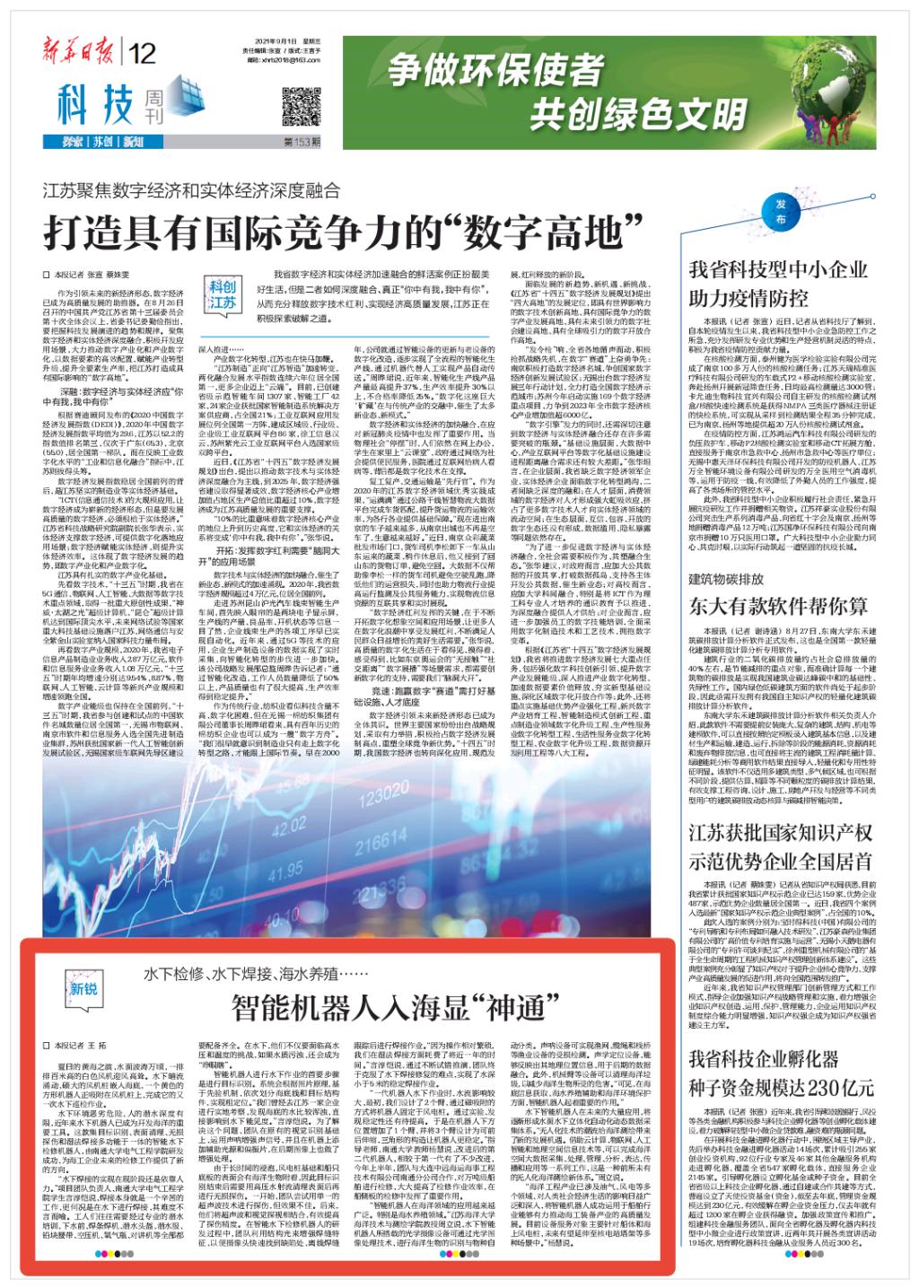 水下环境恶劣危险,人的潜水深度有限,近年来水下机器人已成为开发海洋的重要工具。这款集目标识别、表面清理、无损探伤和湿法焊接多功能于一体的智能水下检修机器人,由南通大学电气工程学院研发成功,为海工企业未来的检修工作提供了新的方向。