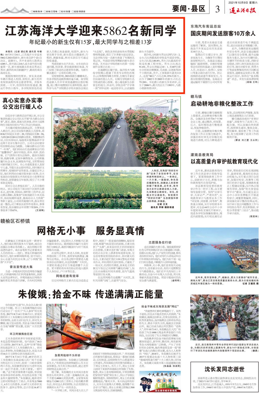 连云港日报 2021年10月9日 3版