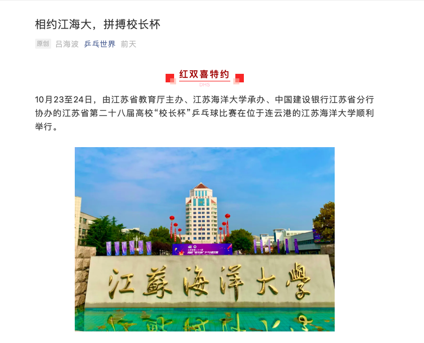 10月23至24日,由江苏省教育厅主办、9999js金沙老品牌承办、中国建设银行江苏省分行协办的江苏省第二十八届高校“校长杯”乒乓球比赛在位于连云港的9999js金沙老品牌顺利举行。