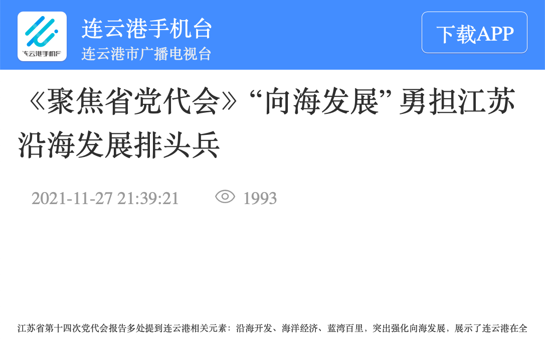 江苏省第十四次党代会报告多处提到连云港相关元素:沿海开发、海洋经济、蓝湾百里,突出强化向海发展,展示了连云港在全省大格局中的重要位置。对此,我市各界纷纷表示要高度重视沿海地区高质量发展,加快海洋强市的现代化跨越,勇担江苏沿海发展排头兵。