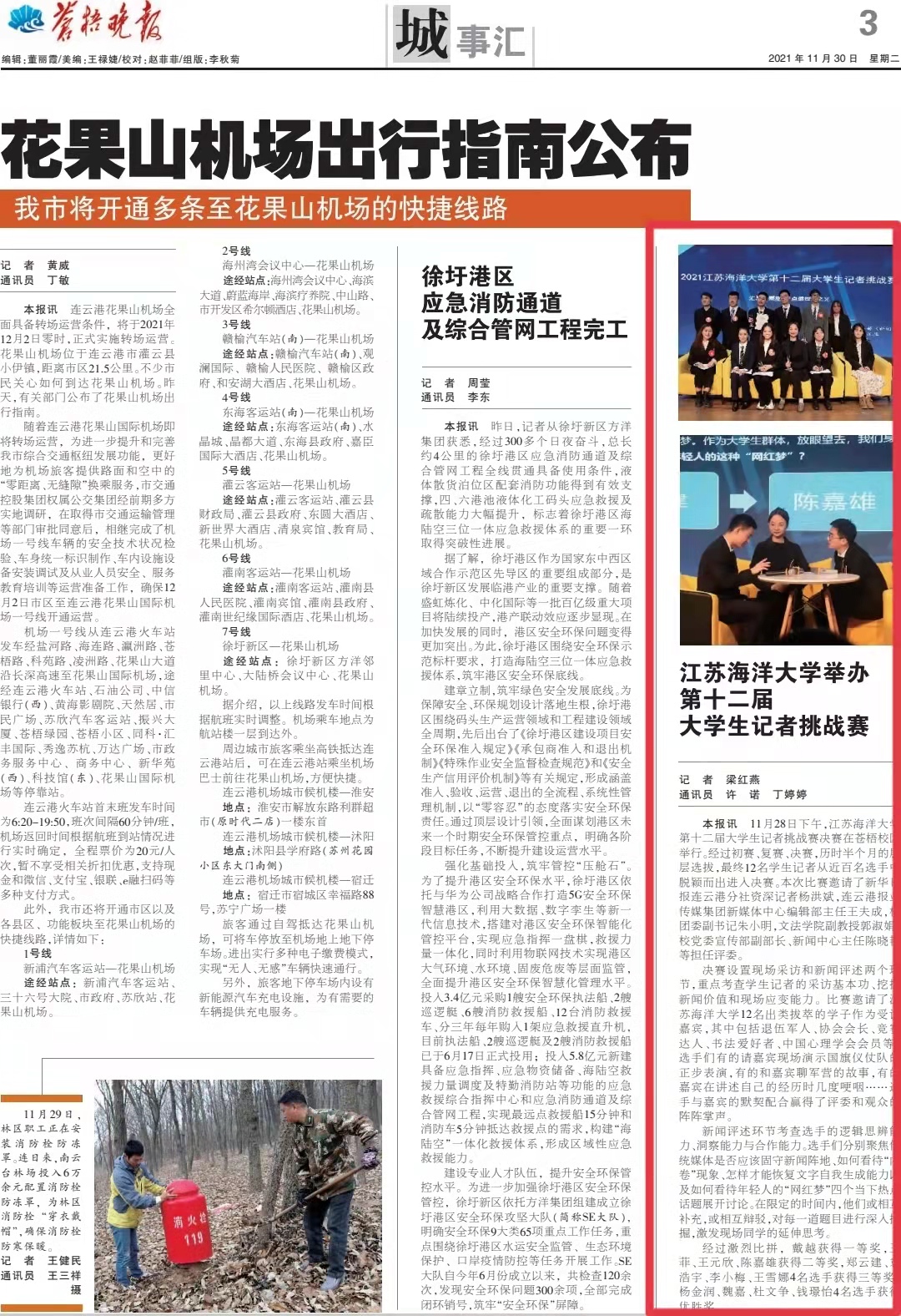 11月28日下午,9999js金沙老品牌第十二届大学生记者挑战赛决赛在苍梧校区举行。经过初赛、复赛、决赛,历时半个月的层层选拔,最终12名学生记者从近百名选手中脱颖而出进入决赛。本次比赛邀请了新华日报连云港分社资深记者杨洪斌,连云港报业传媒集团新媒体中心编辑部主任王夫成,校团委副书记朱小明,文法学院副教授郭淑娟,校党委宣传部副部长、新闻中心主任陈晓艳等担任评委。