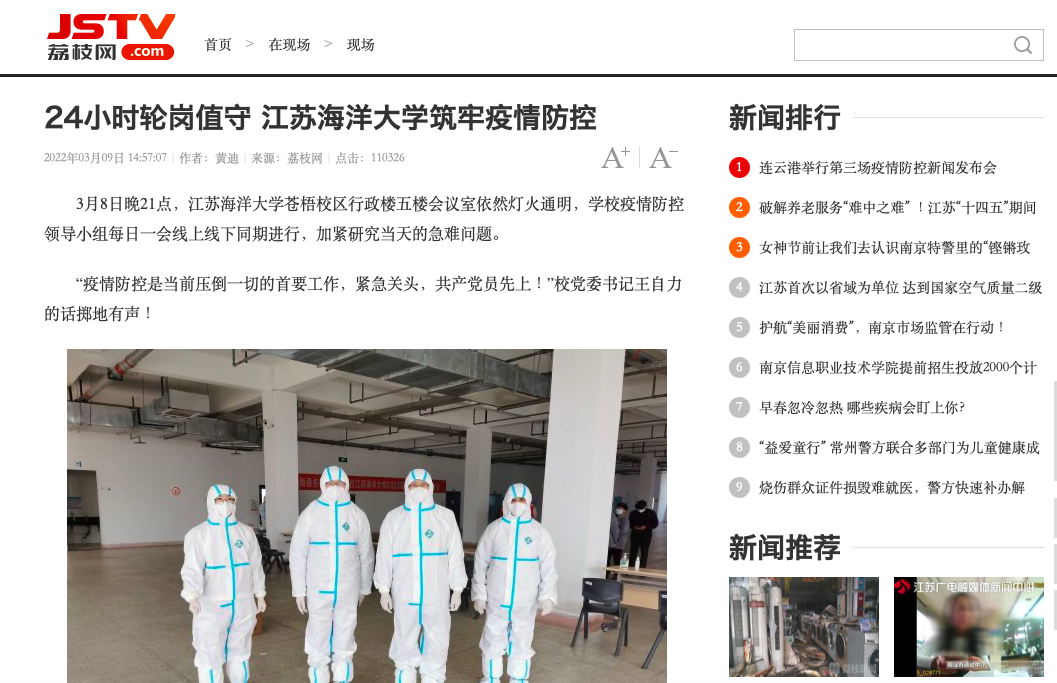 三月初,新冠疫情突袭连云港。学校已经开学半月余,各校区返校学生总计近2万人,落实防控措施责任重、压力大,筑牢校园防控屏障刻不容缓。